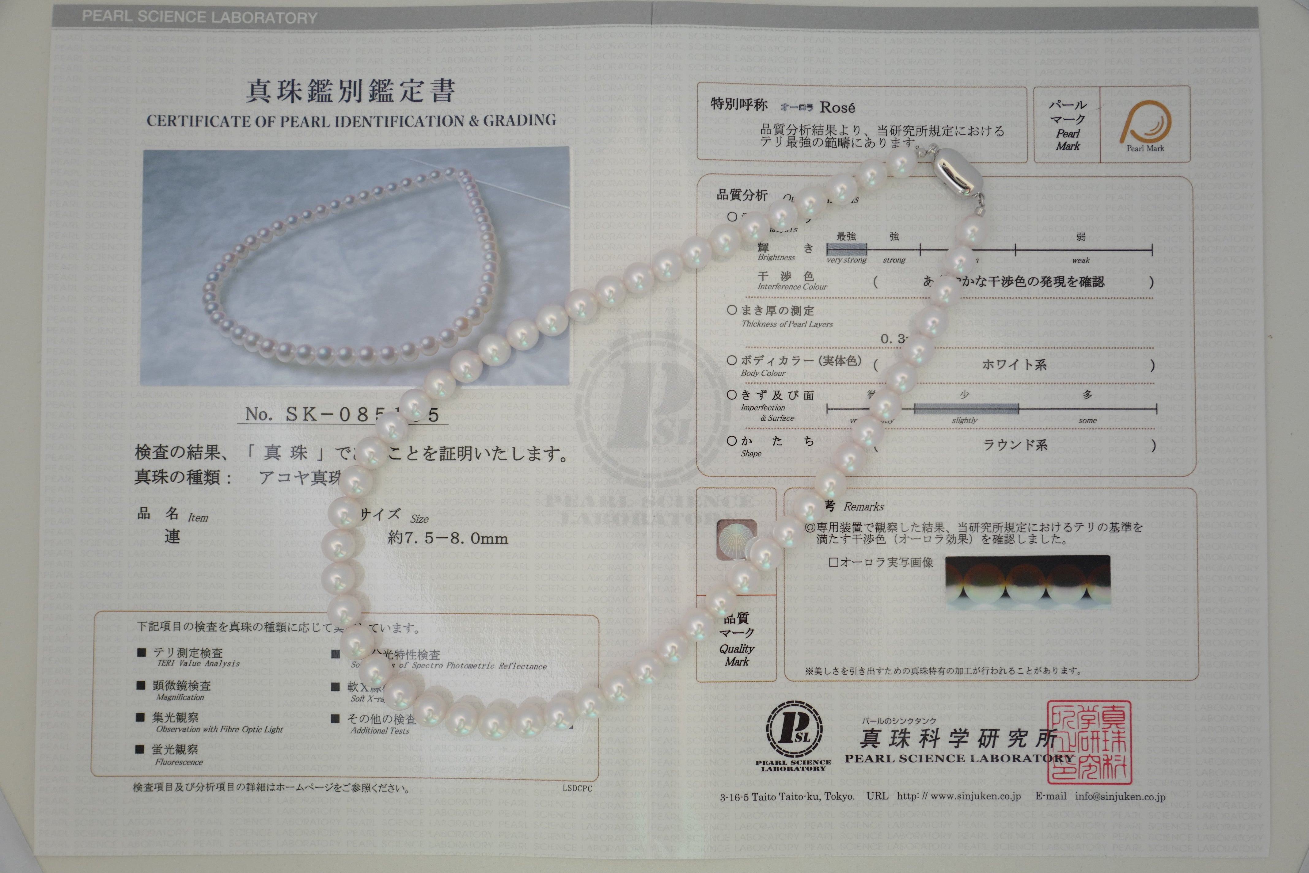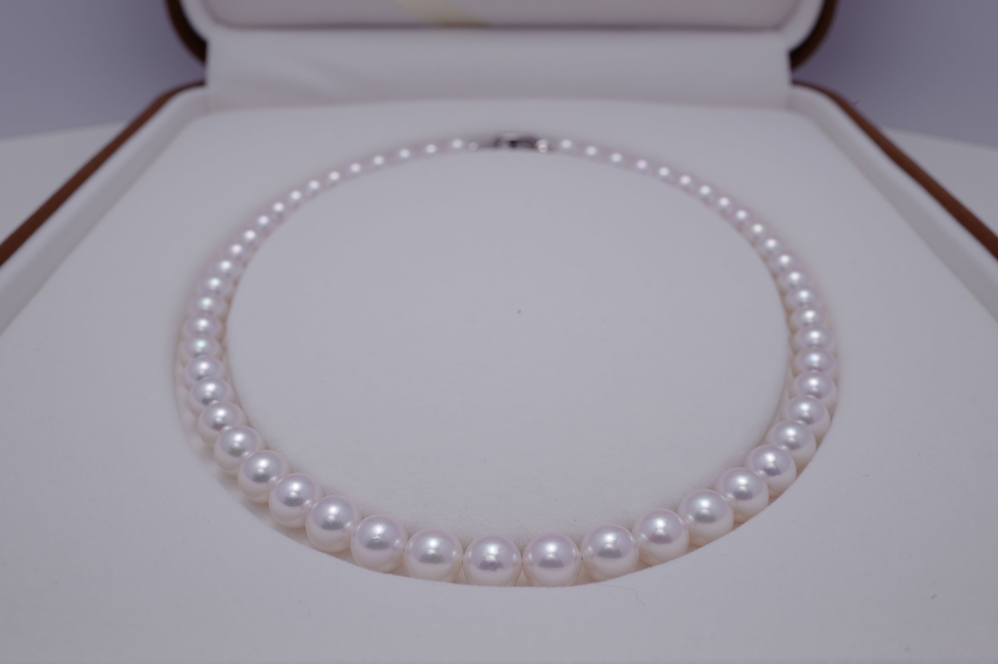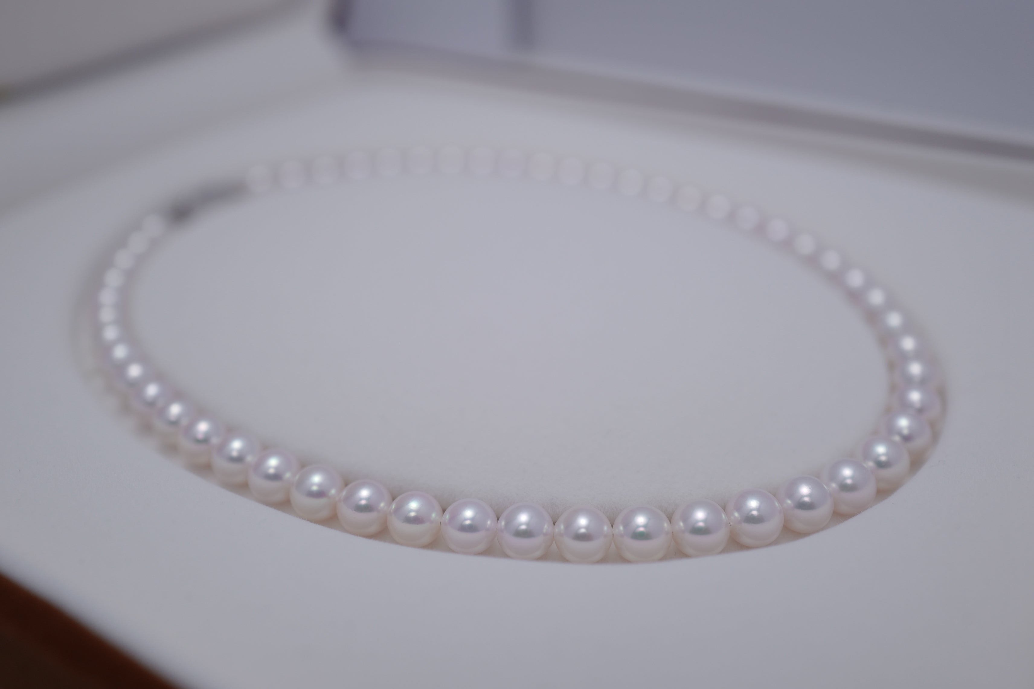These round pearls are 7.5-8.0mm in size, which is large in size for the Akoya pearl, and have been selected for their exceptional quality and very sharp lustre.