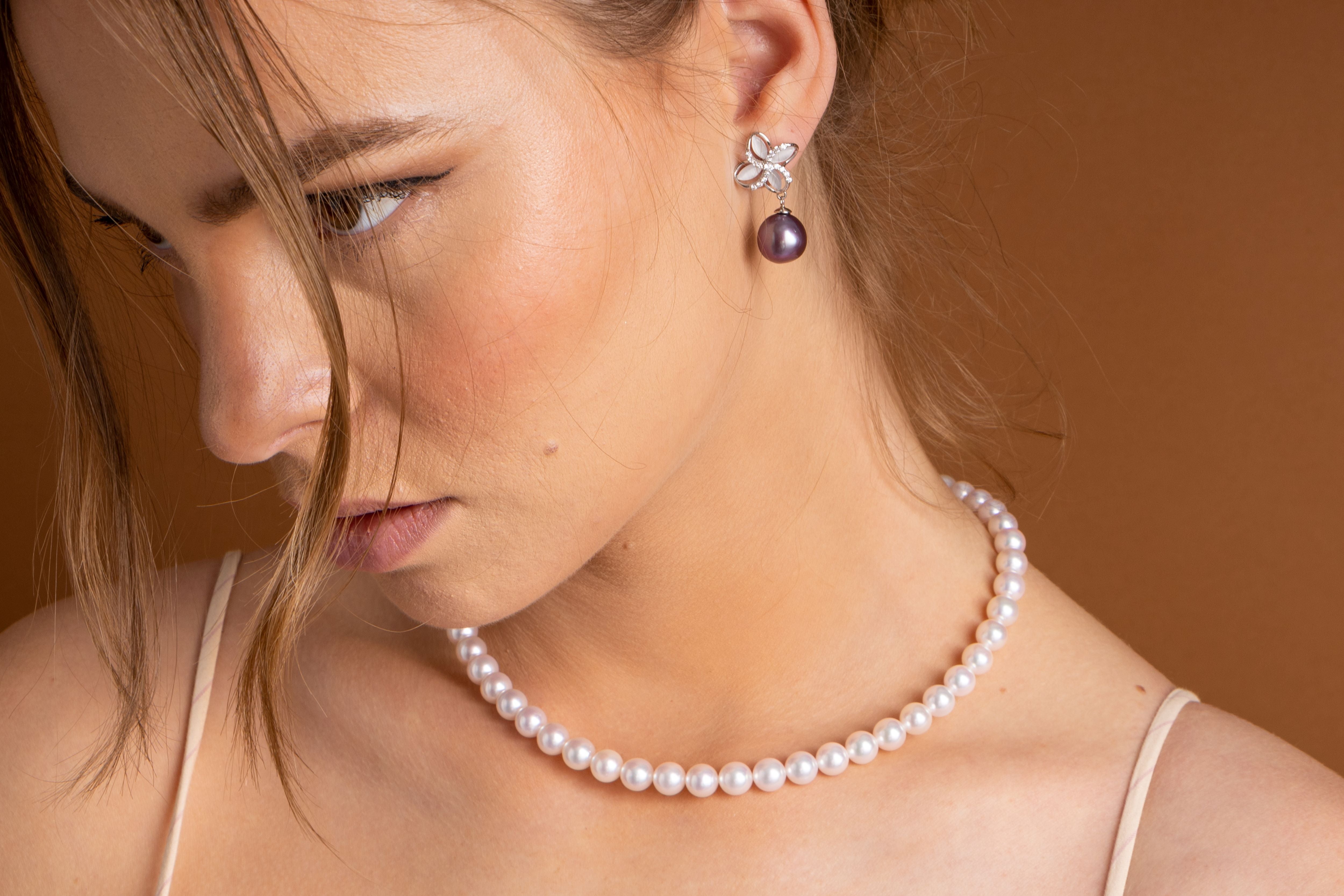 The classic Akoya pearl is a type of cultured saltwater pearl originating from Japan and has a characteristically white colour, with a pink overtone.