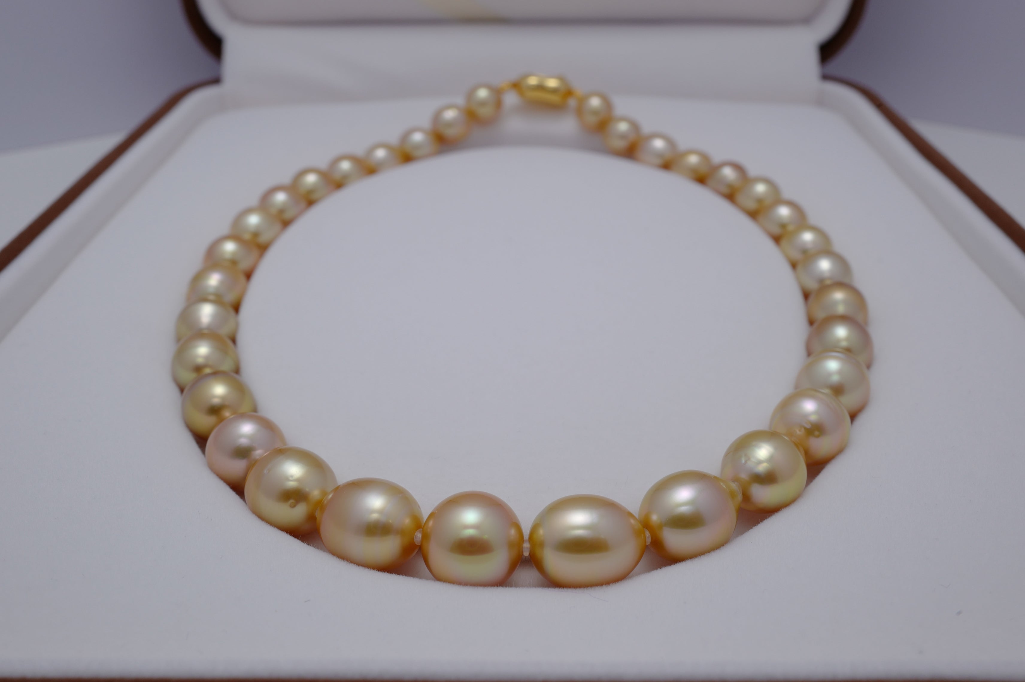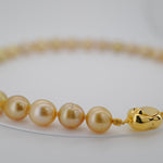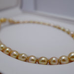 Beautiful fine jewellery for the evening, this breathtaking necklace is made with golden South Sea pearls, cultured in the saltwater silver and gold-lipped Pinctada maxima oysters in the ocean waters of the Philippines, Myanmar, Indonesia and Australia.