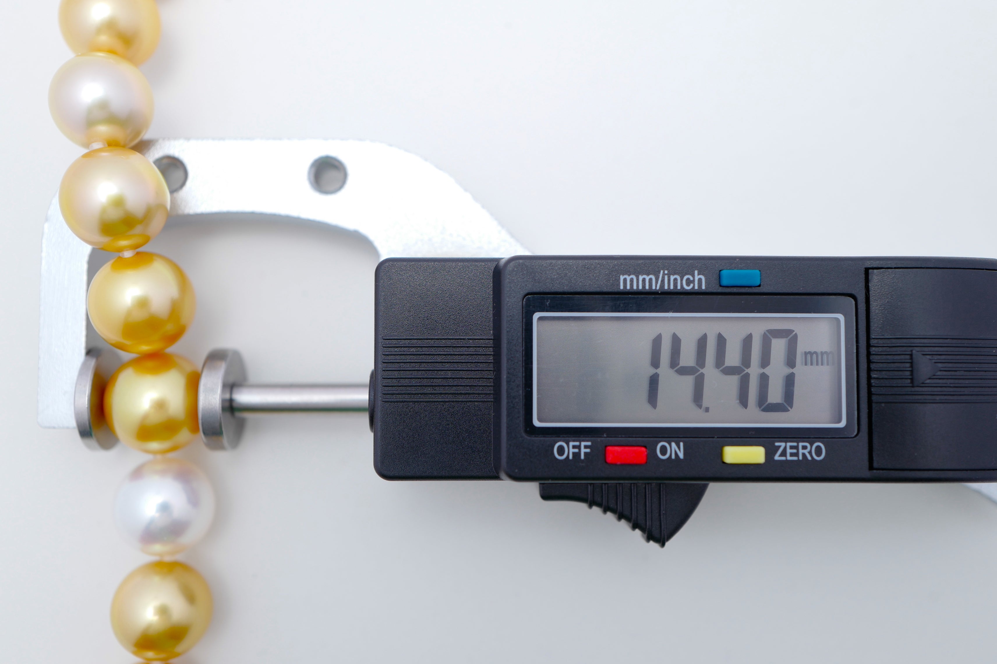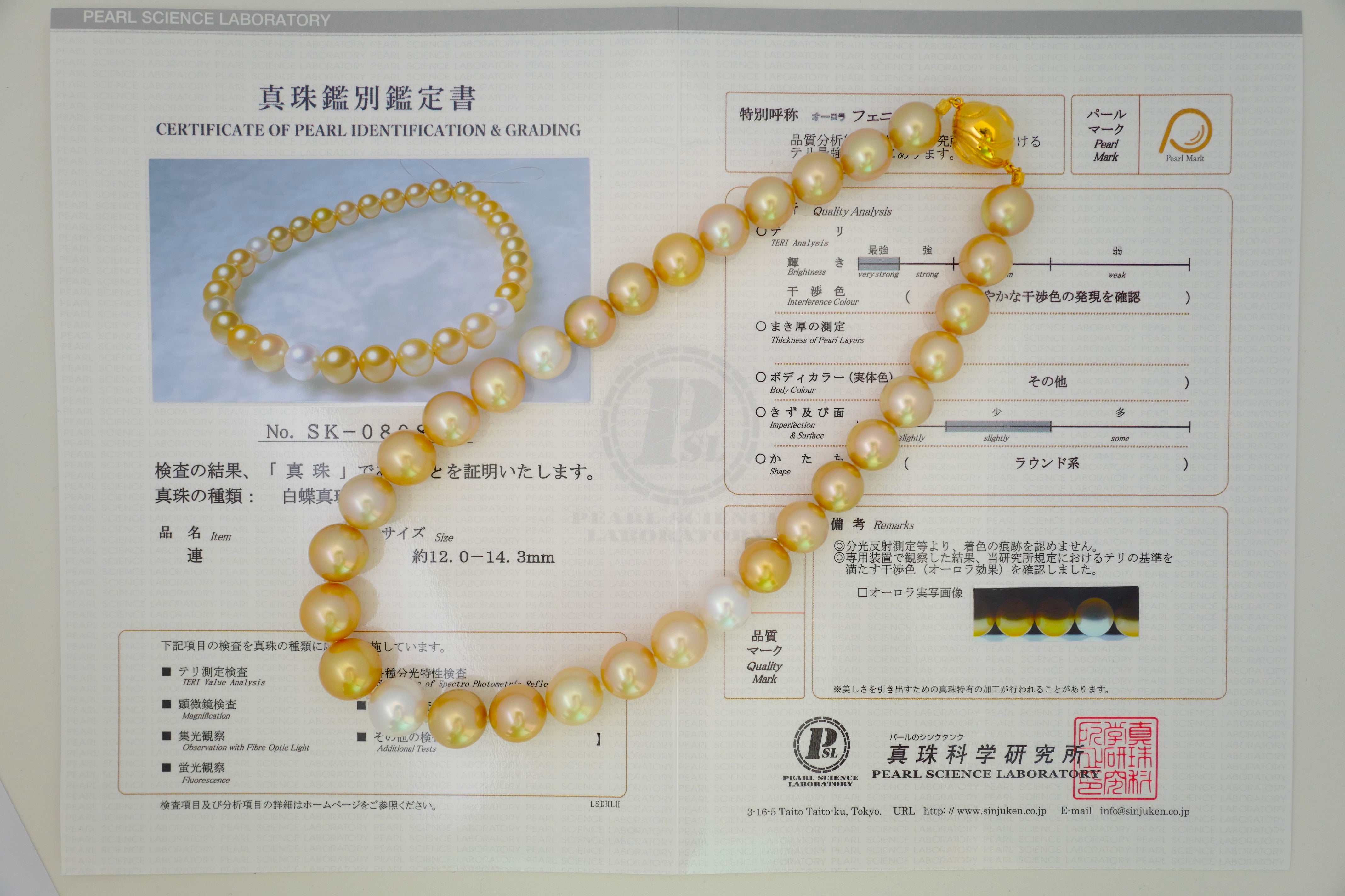 The pearls measure between 12 and 14.3 in diameter and have been carefully matched throughout the necklace, creating a slight graduation to the front of the necklace.