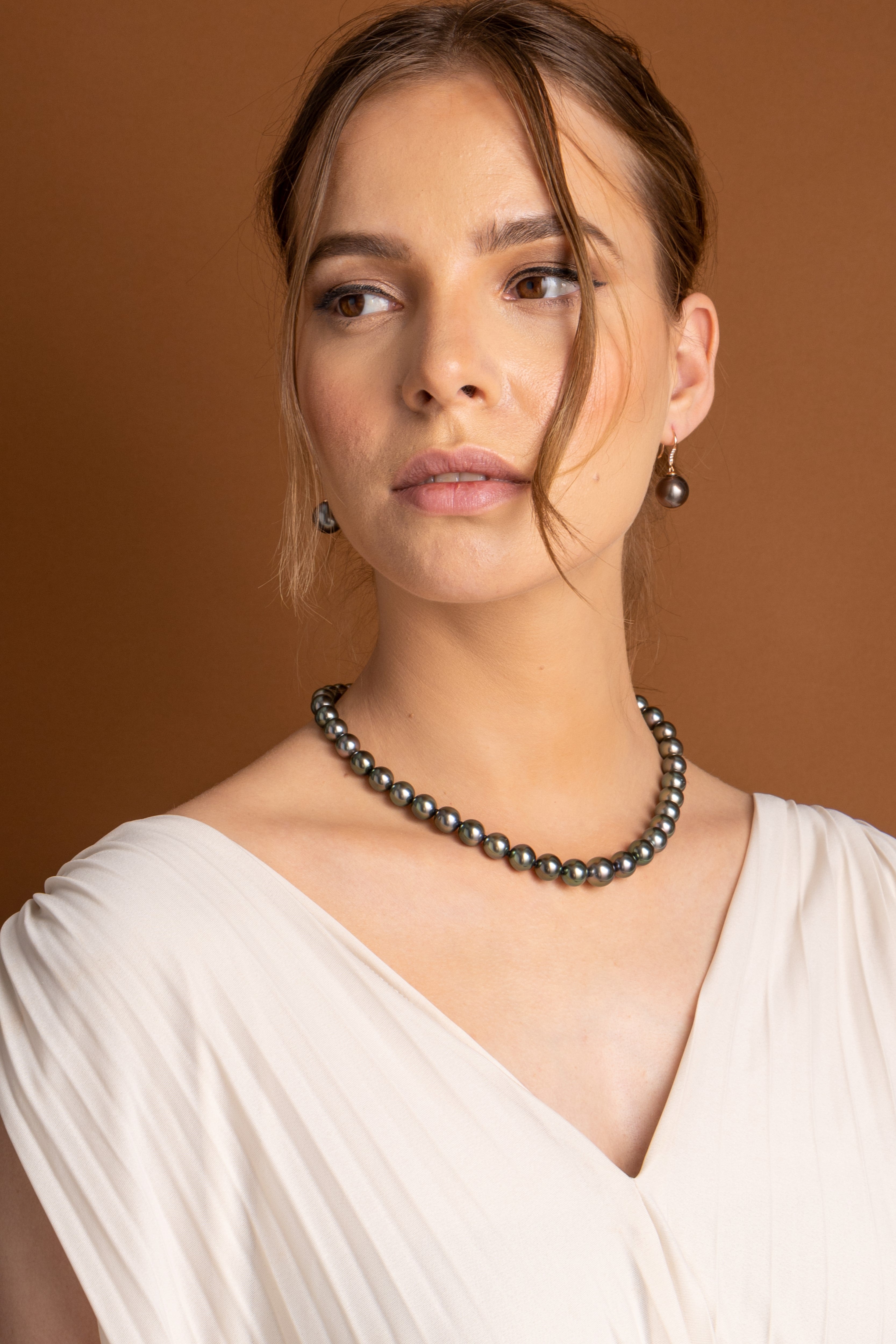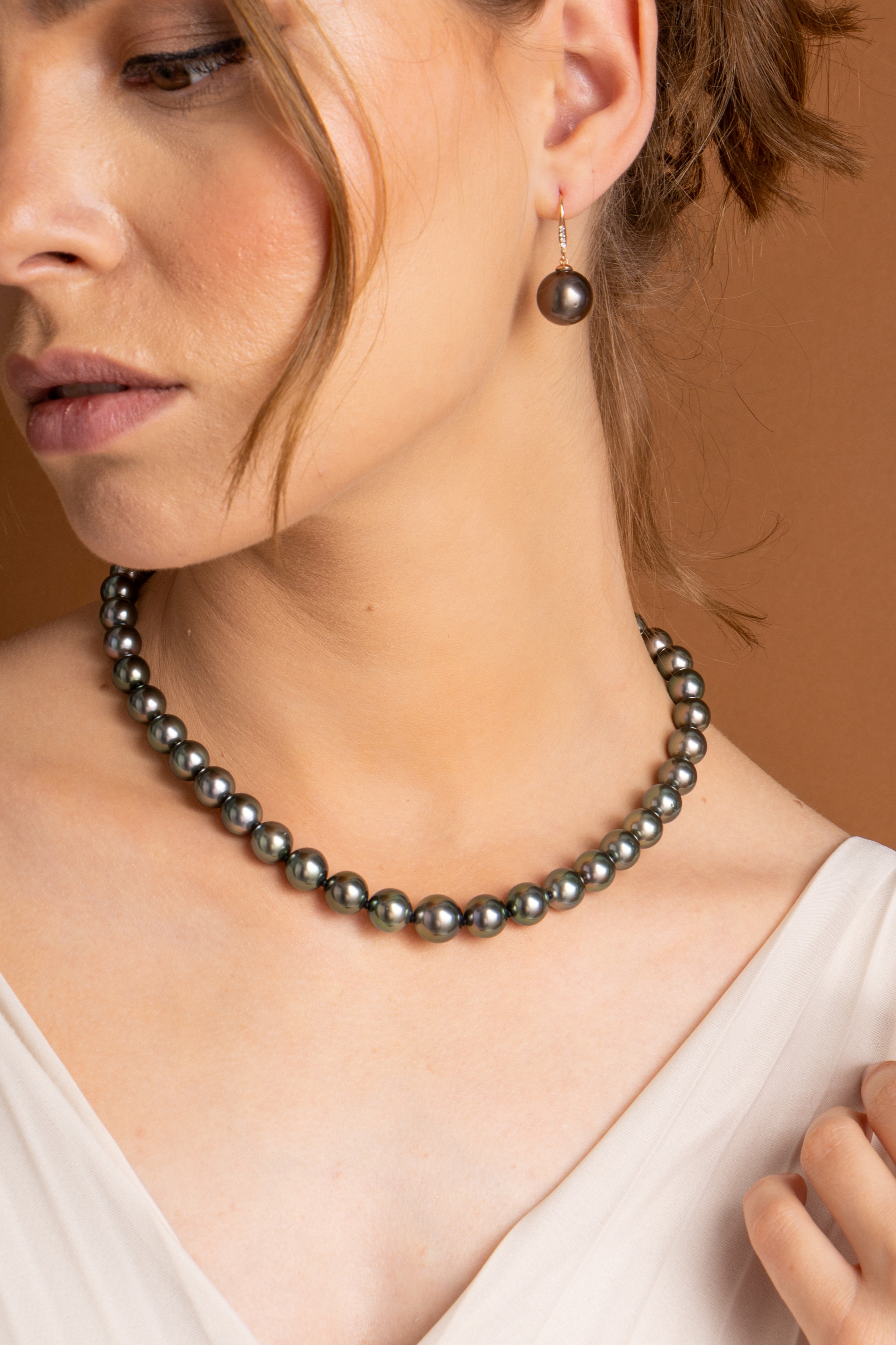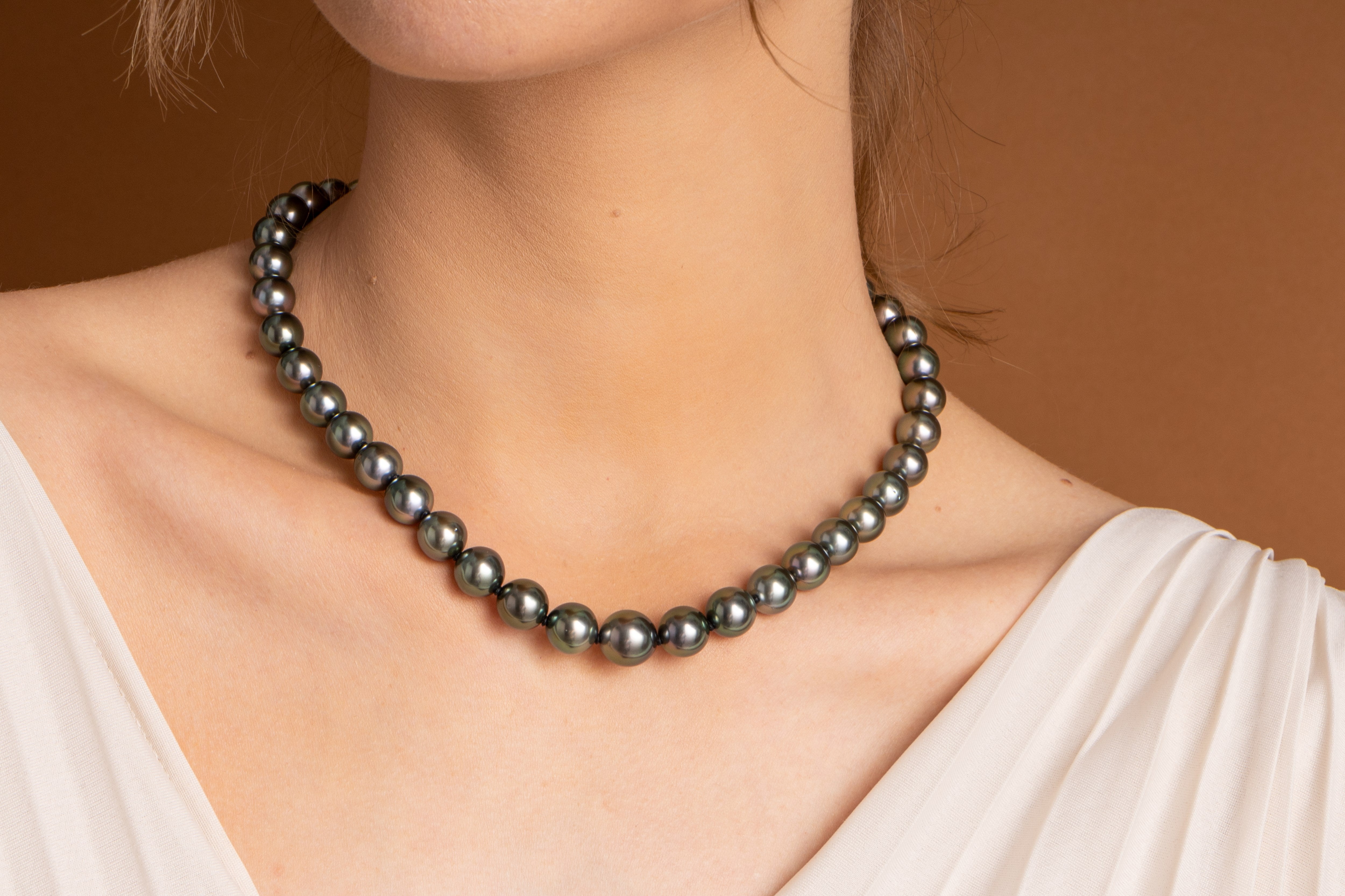 The Tahitian pearls that have been selected for this necklace are approximately 9.0-11.6mm in diameter.
