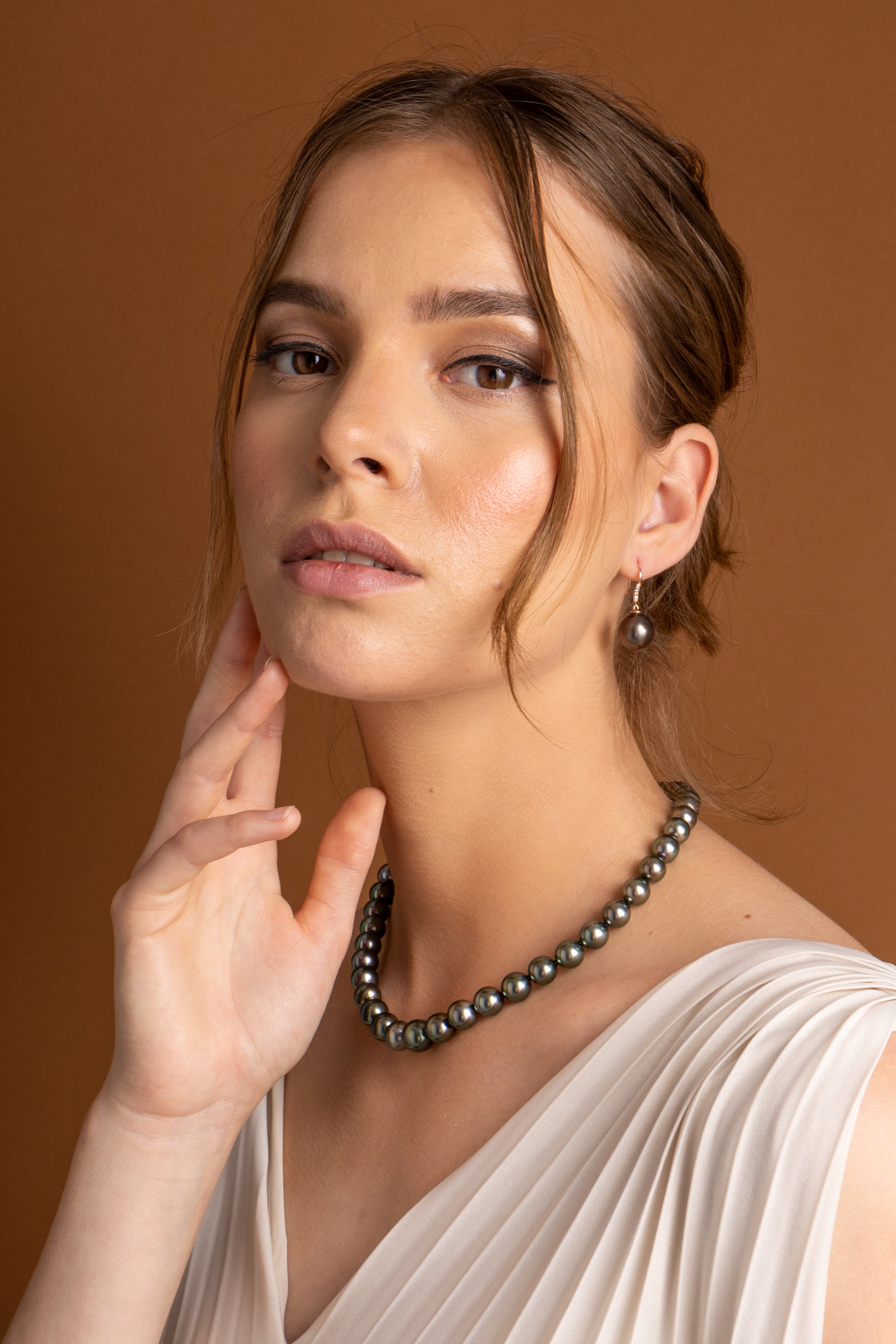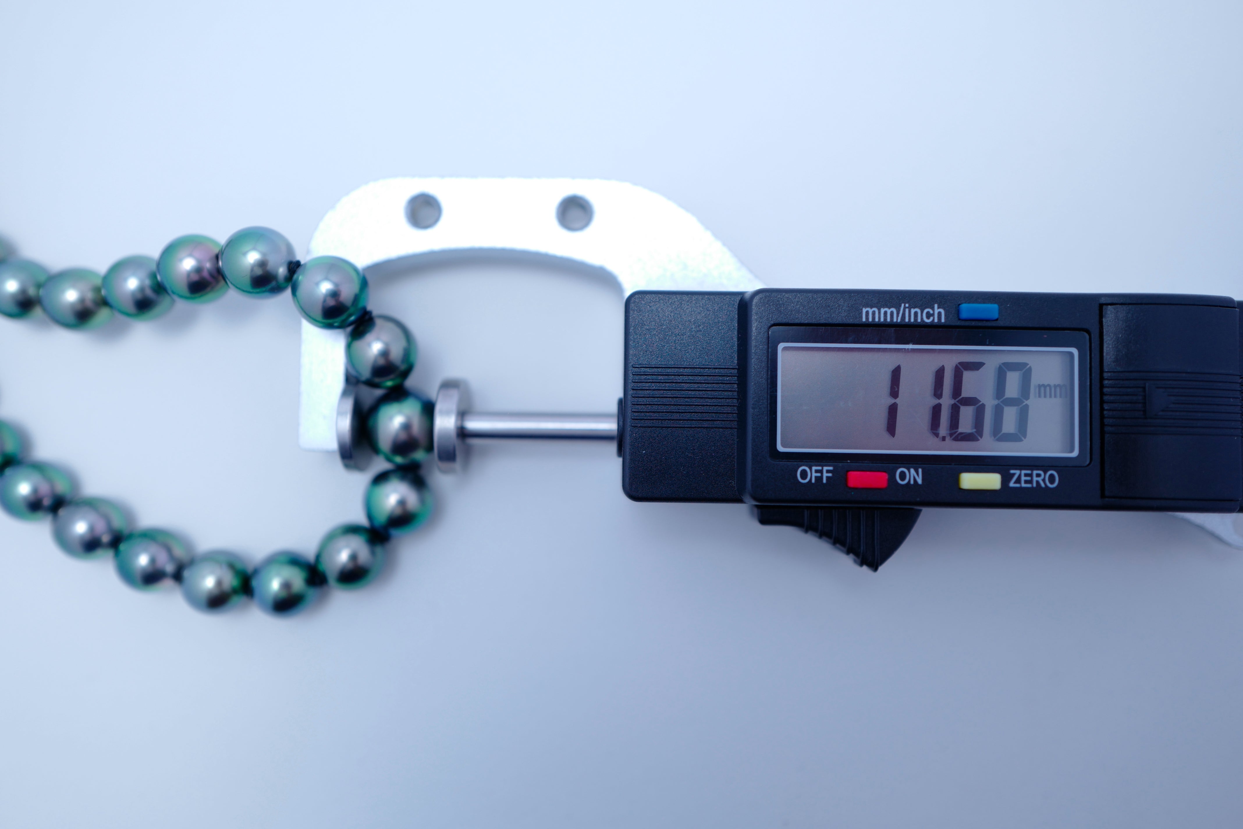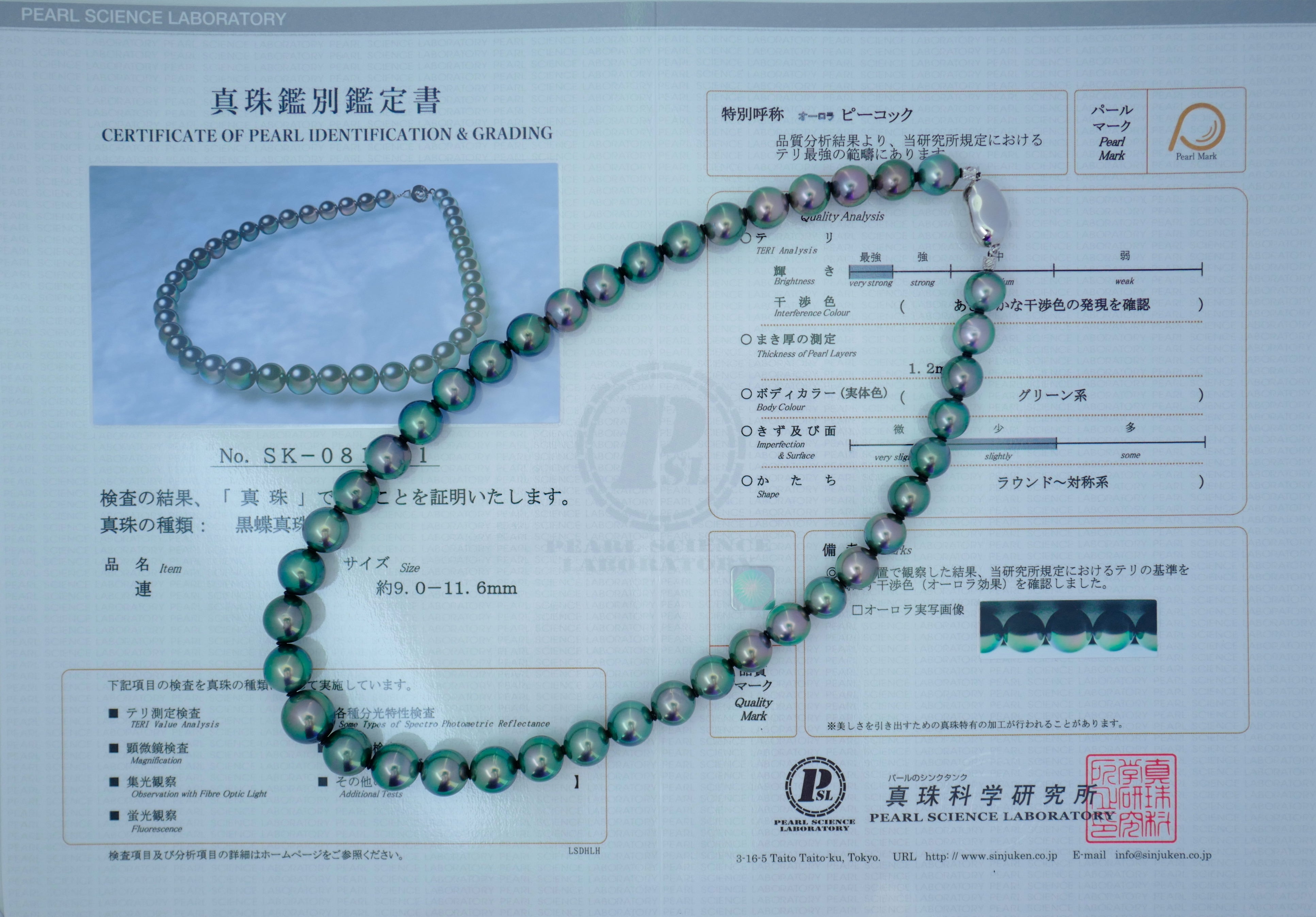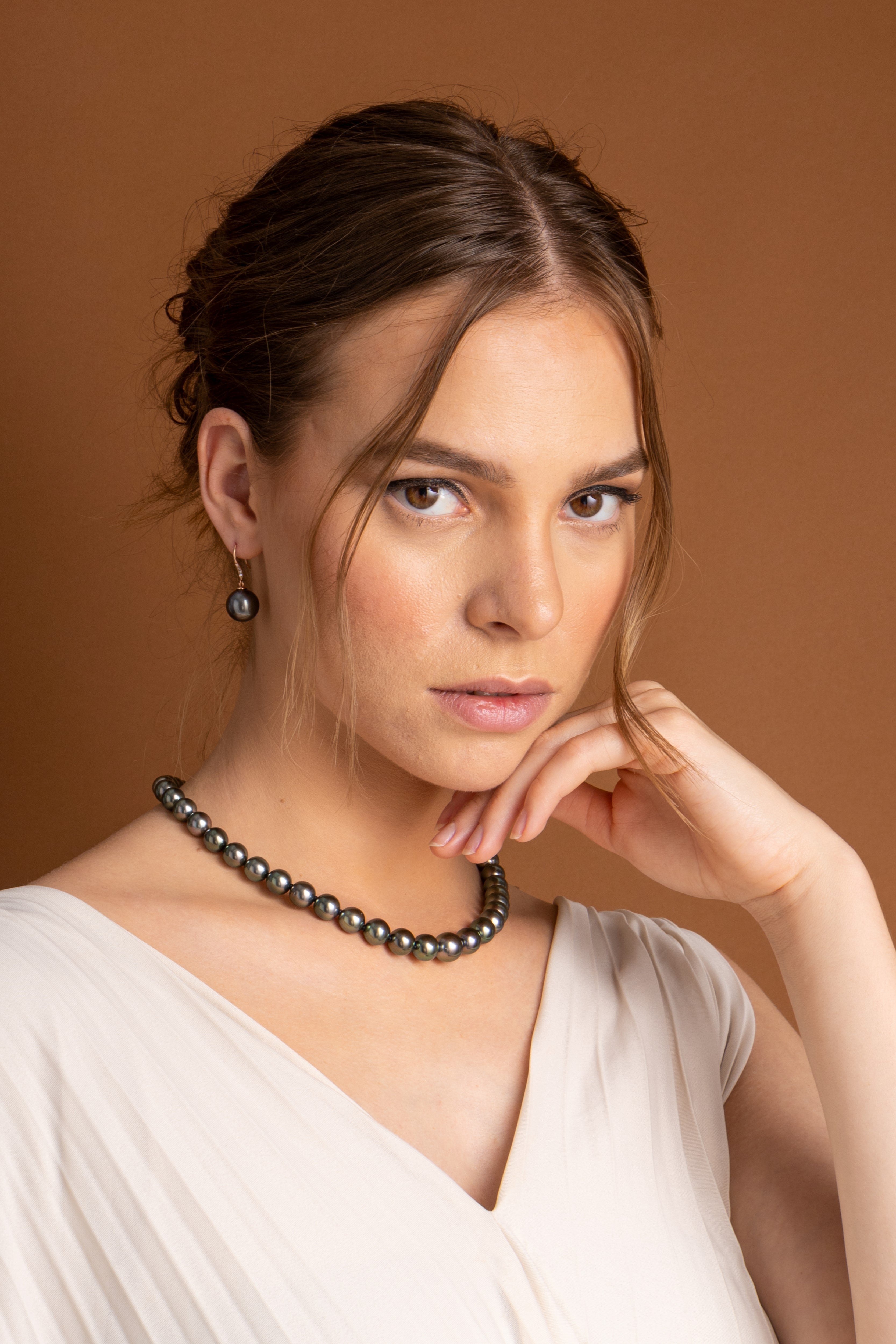The Tahitian pearls that have been selected for this necklace are approximately 9.0-11.6mm in diameter.