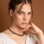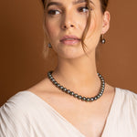 The eye-catching colour of the pearls throughout the necklace displays all the characteristics of grey, light green and peacock green Tahitian pearls.