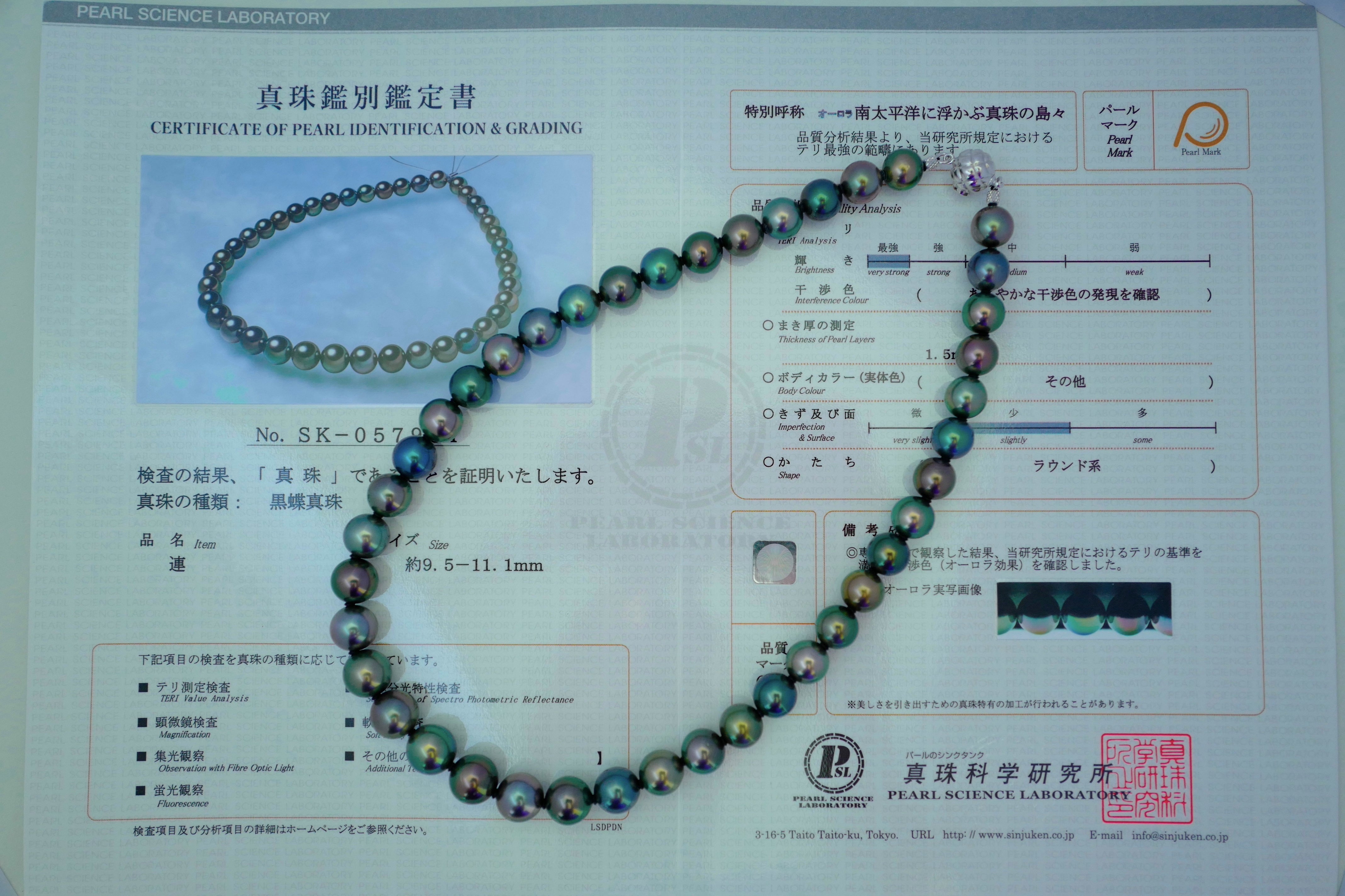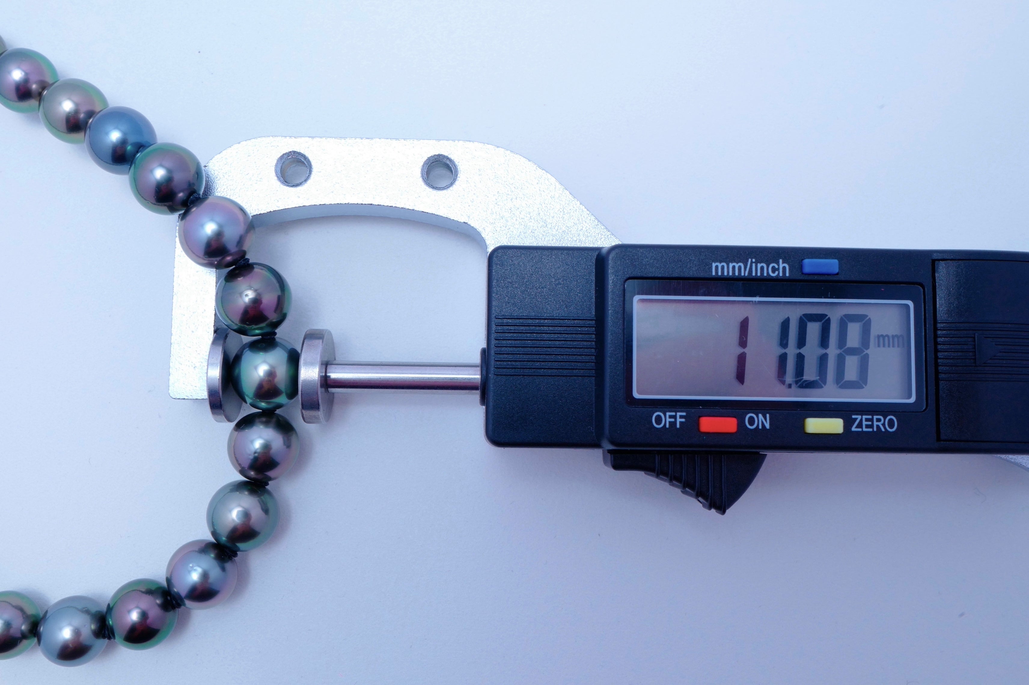 The Tahitian pearls that have been selected for this necklace are approximately 9.5-11.1mm in diameter.
