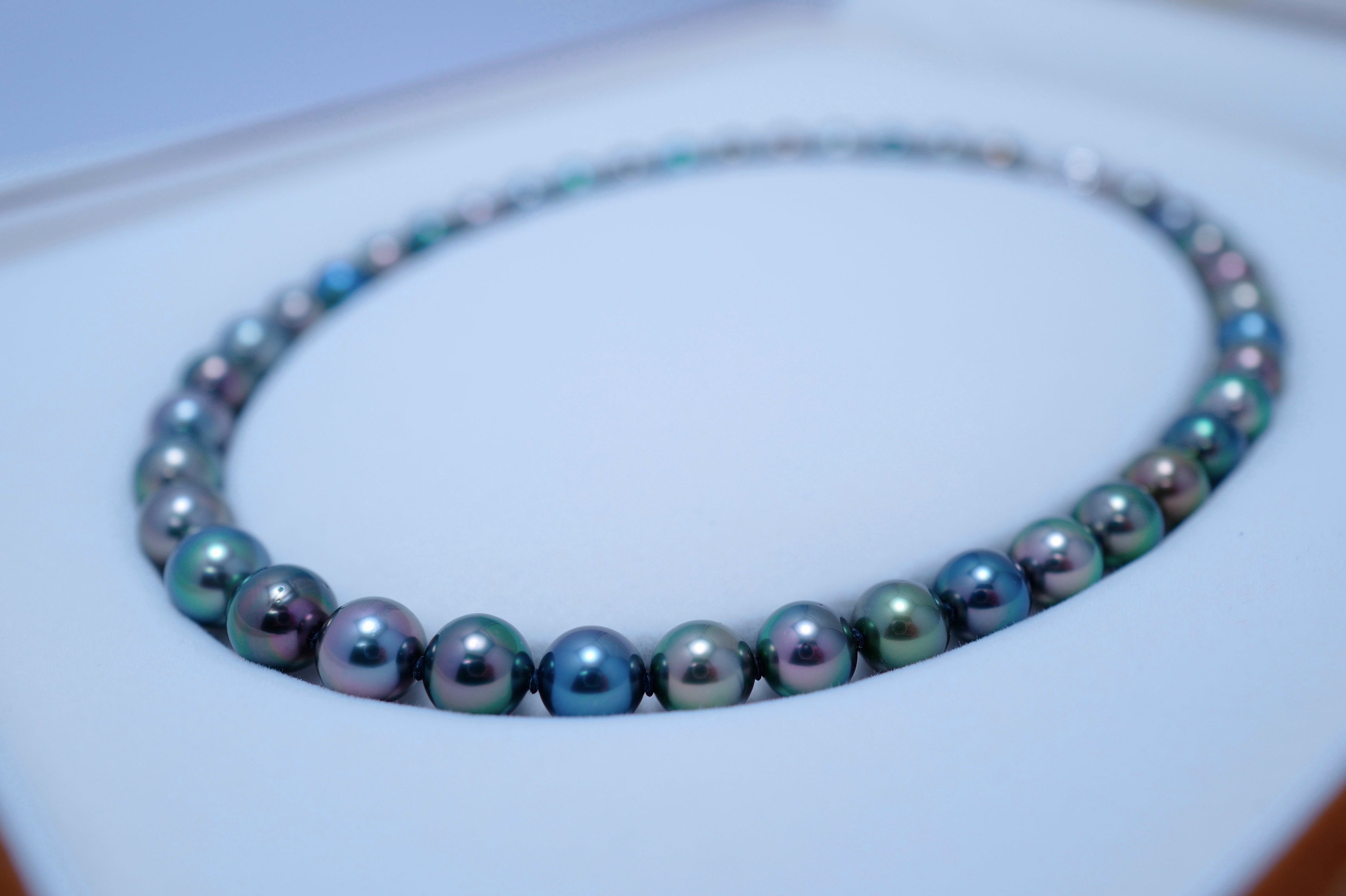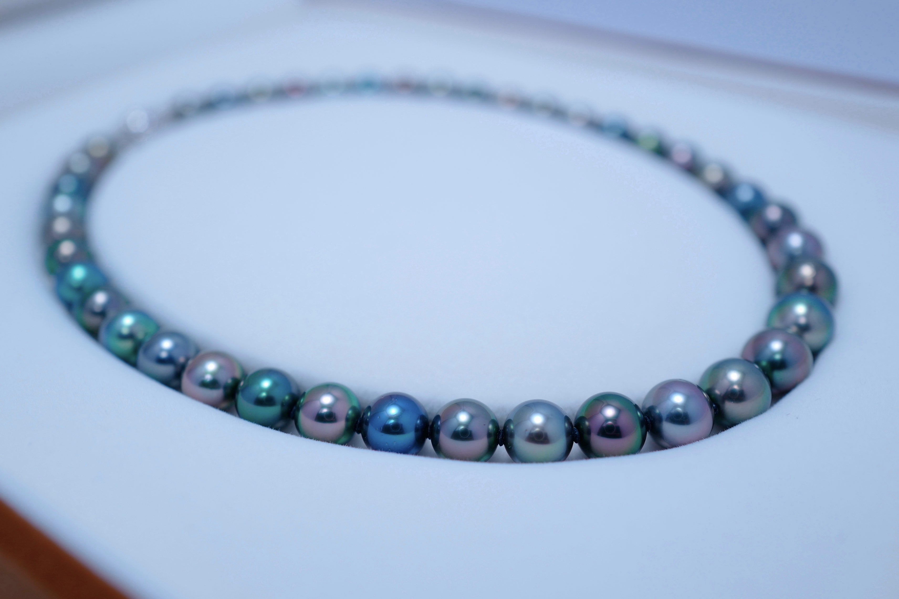 Perfect Round Tahitian Multicolour Pearl necklace 9.5-11.1mm