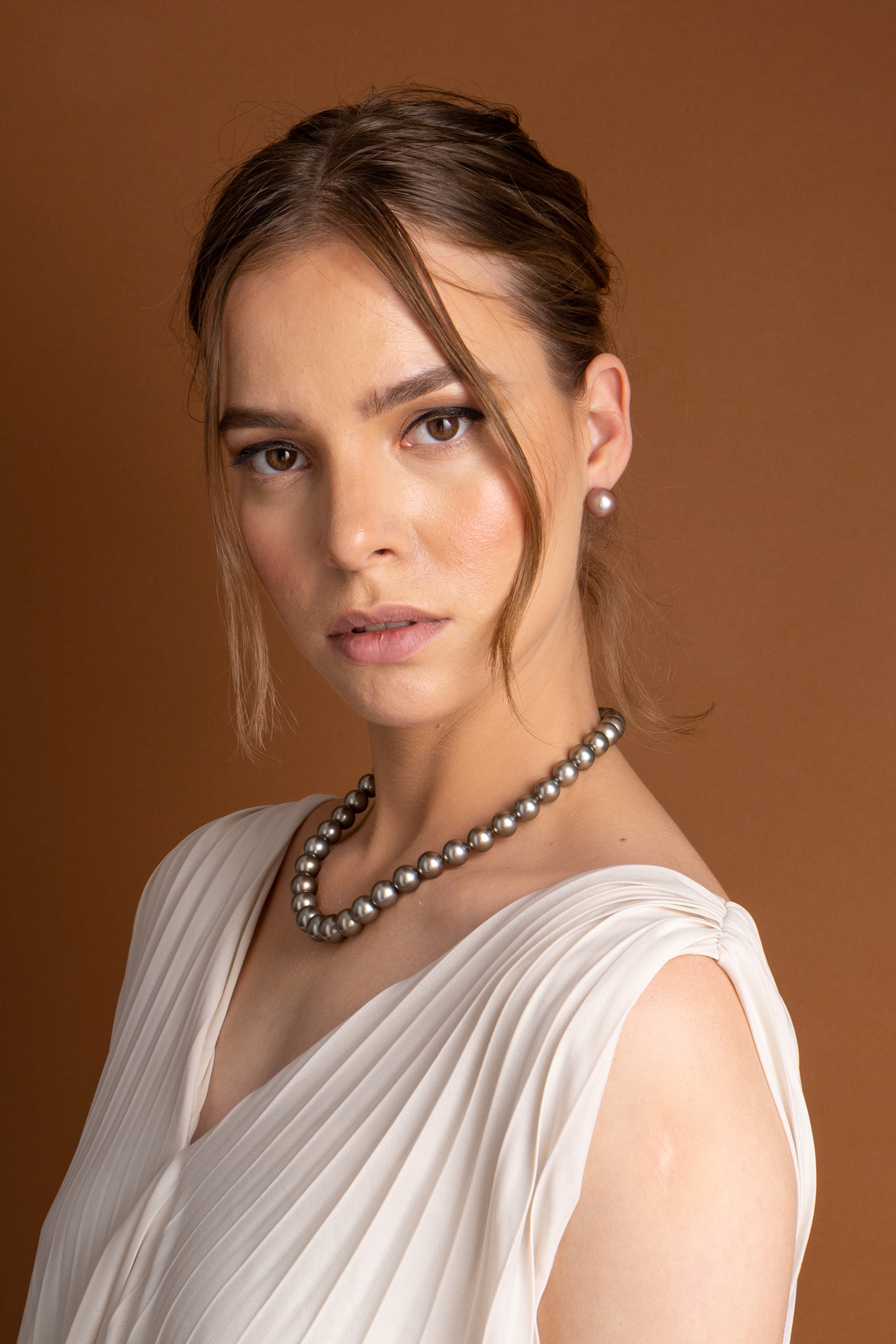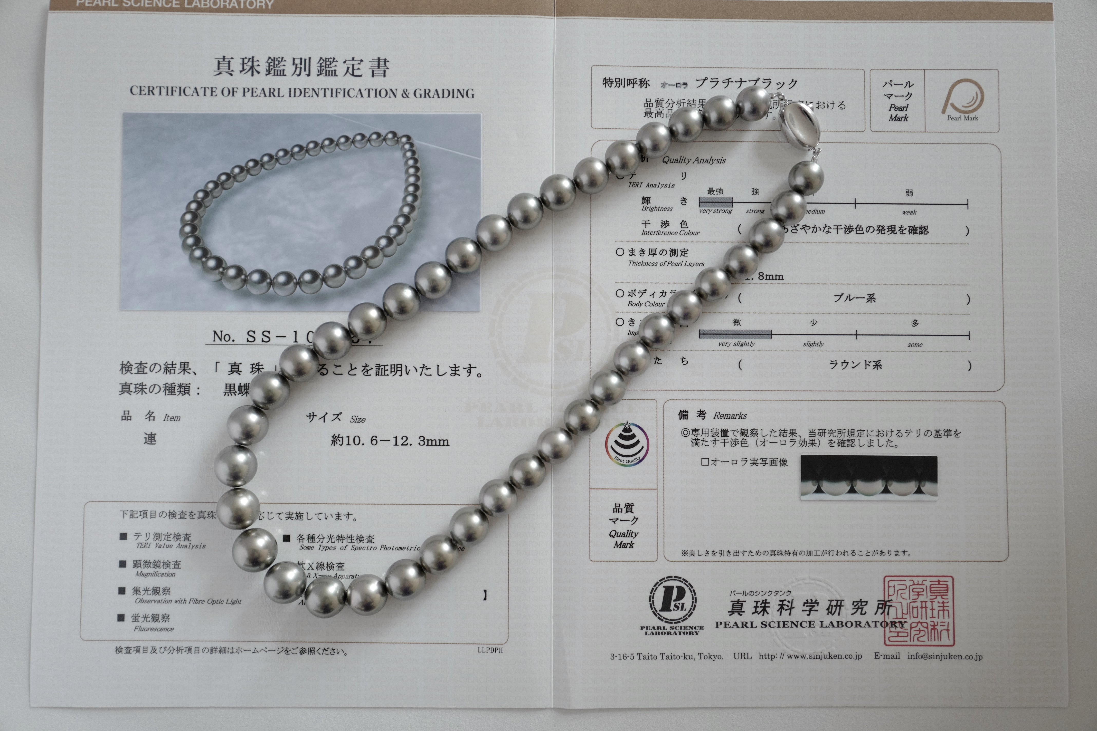 The Tahitian pearls that have been selected for this necklace are approximately 10.6-12.3mm in diameter.