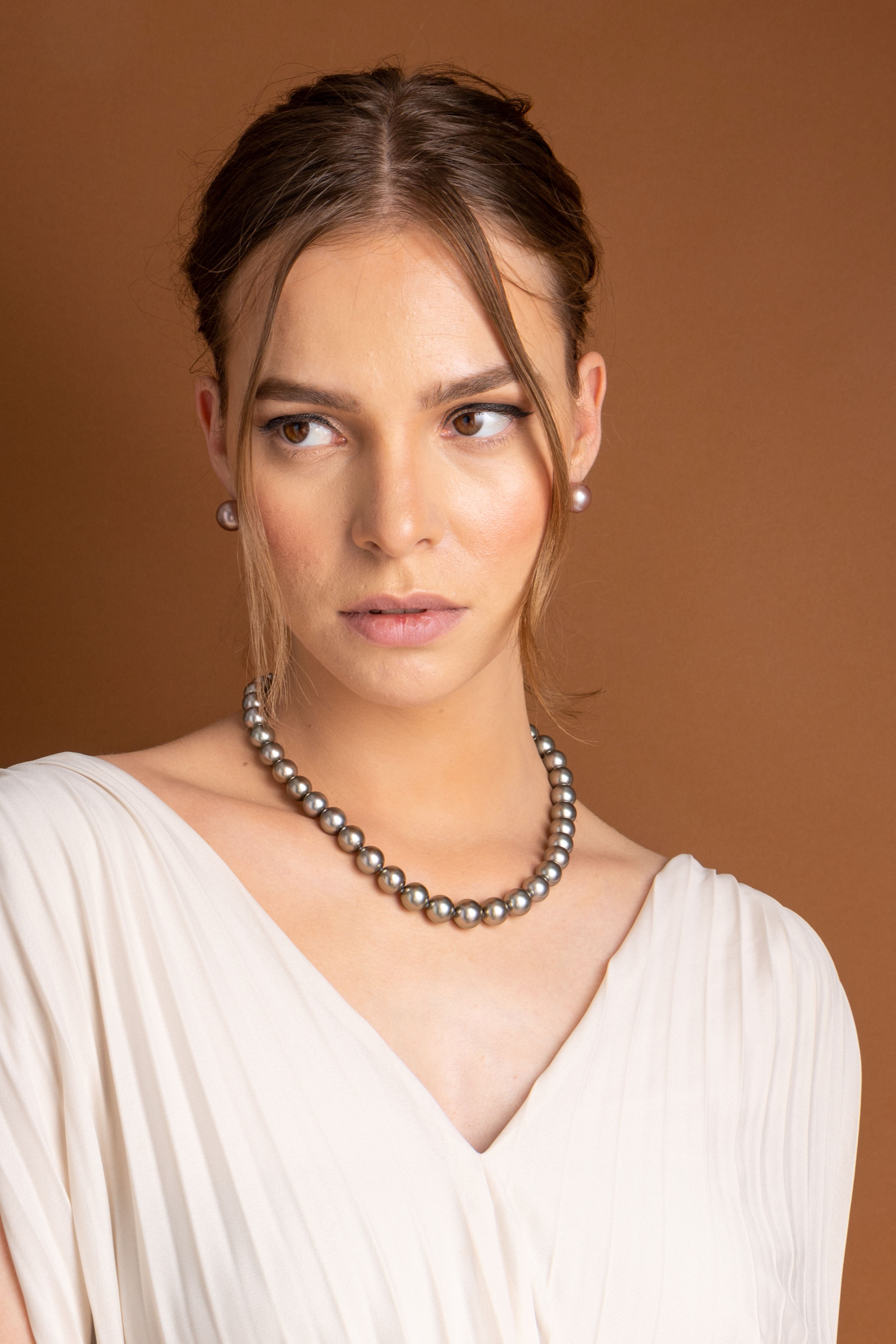Platinum Grey Tahitian Pearl Necklace 10.6-12.3mm