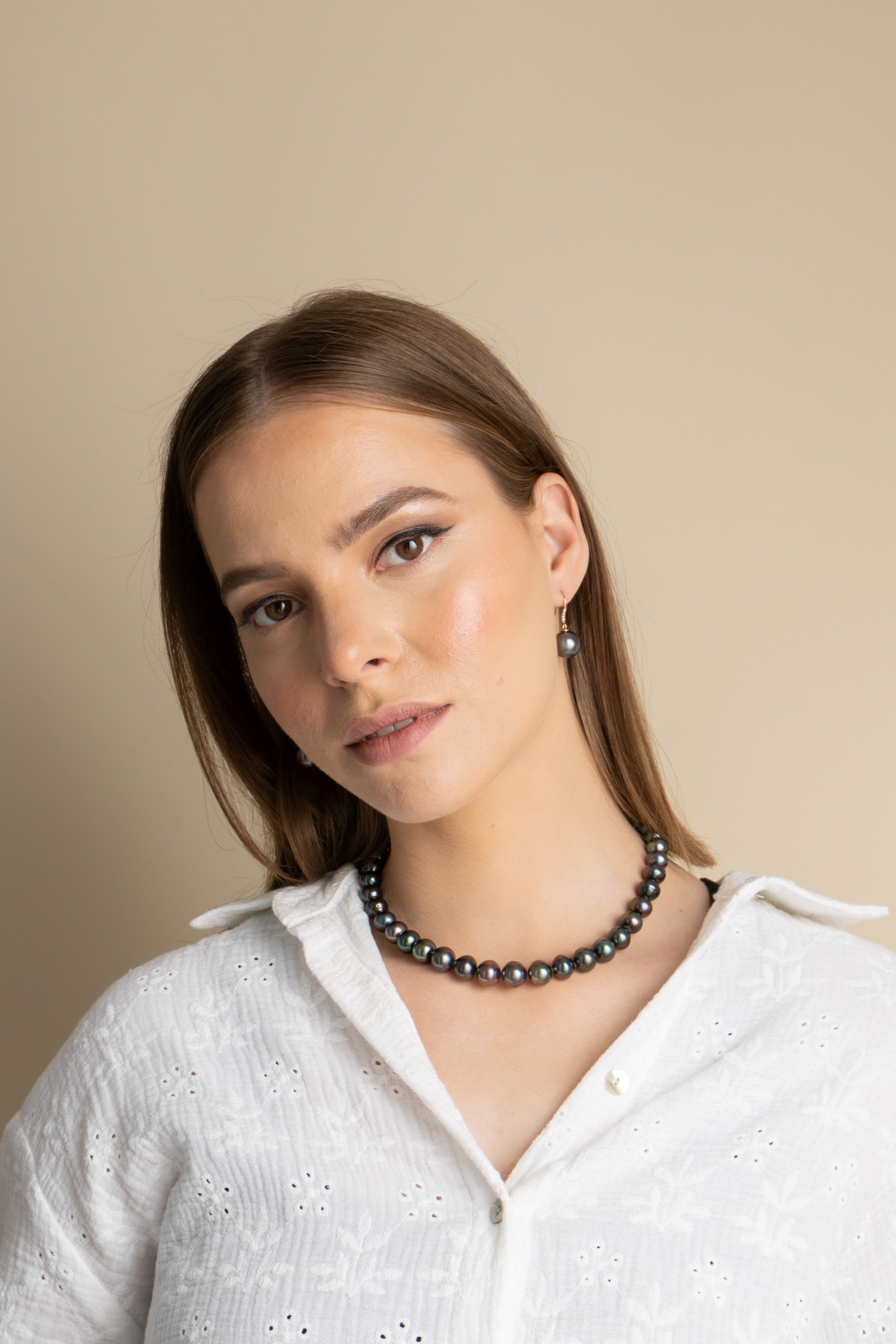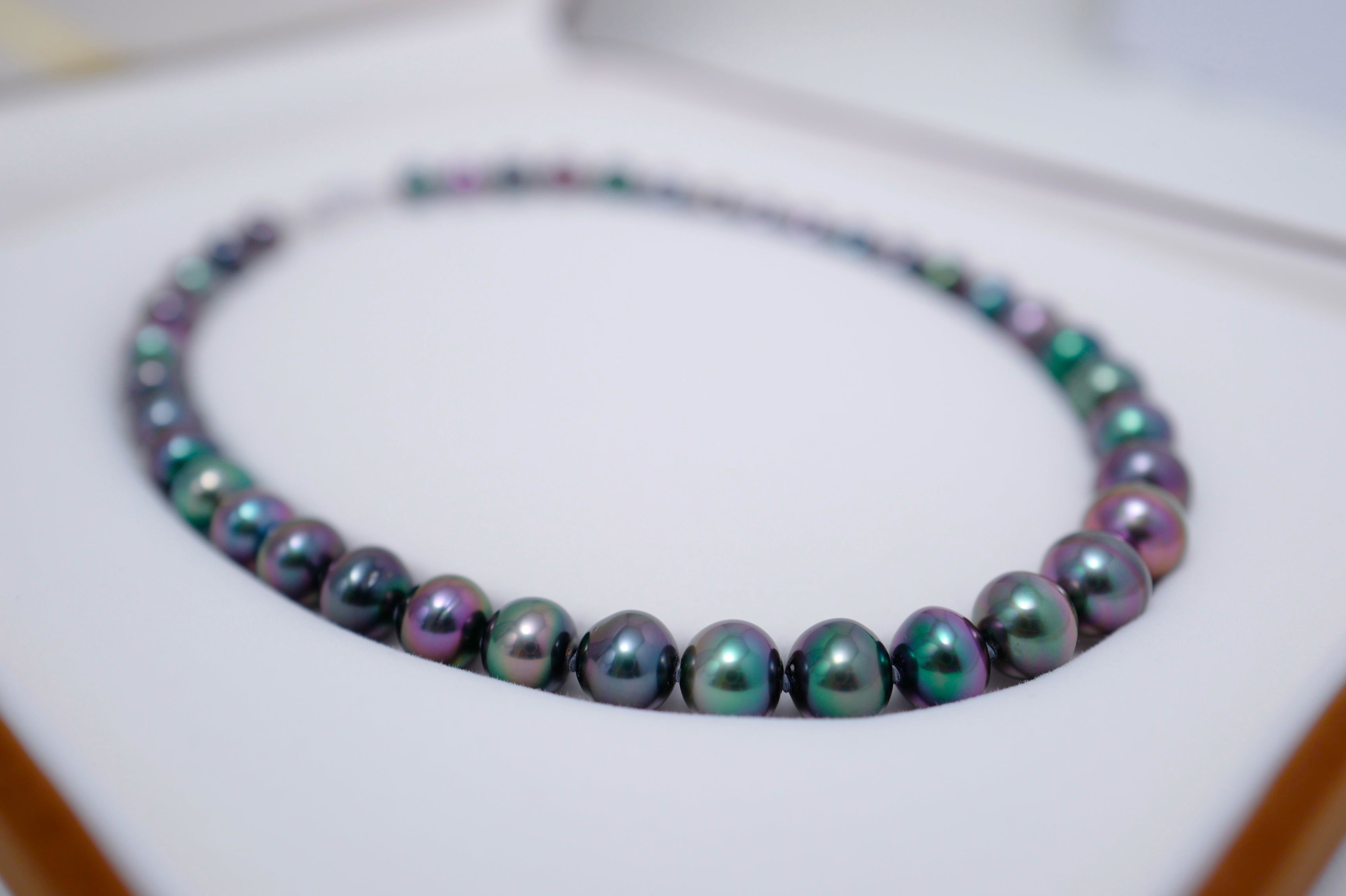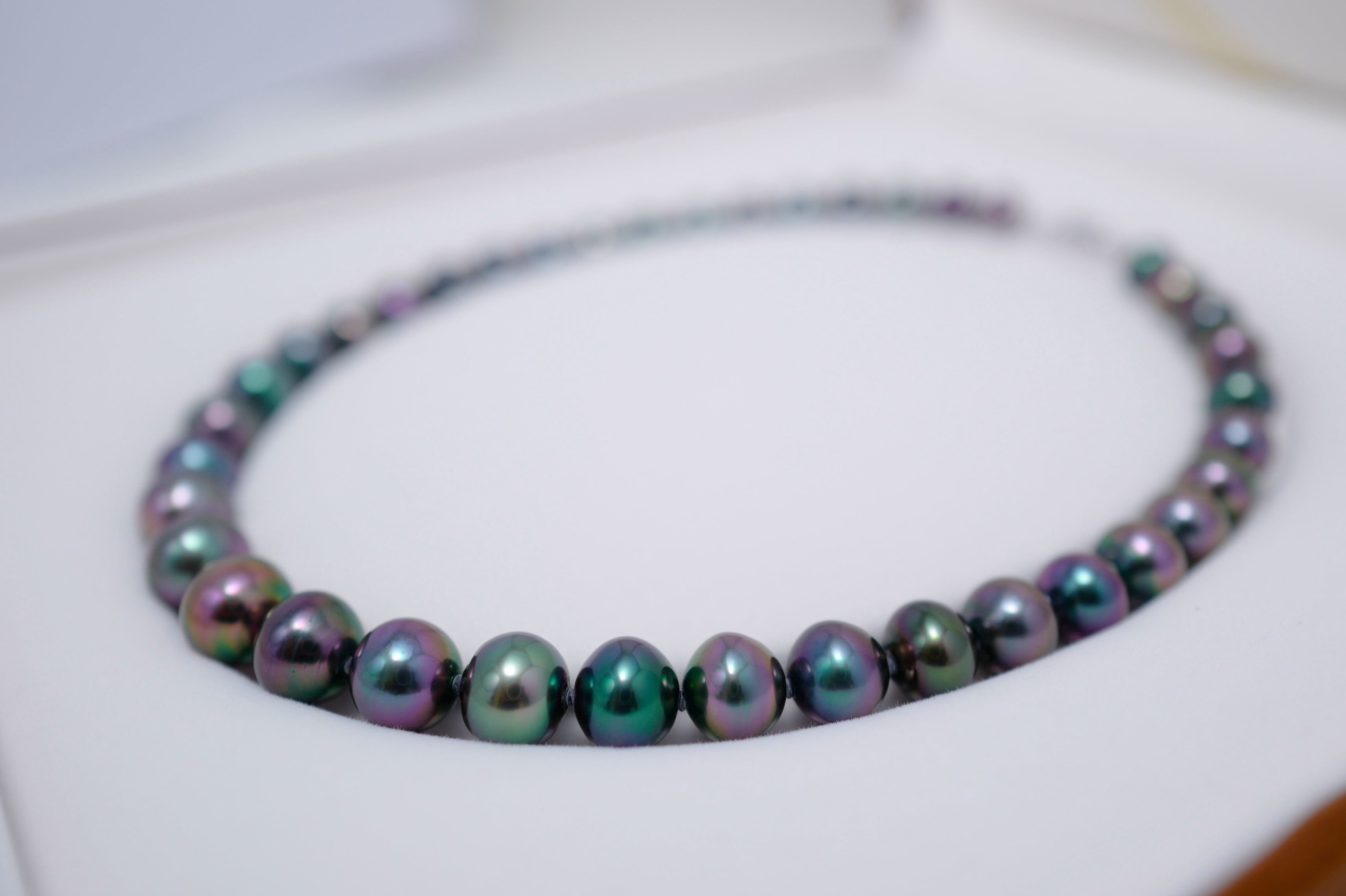 Tahitian Multicolour Oval Pearl necklace 9.3-12.4mm