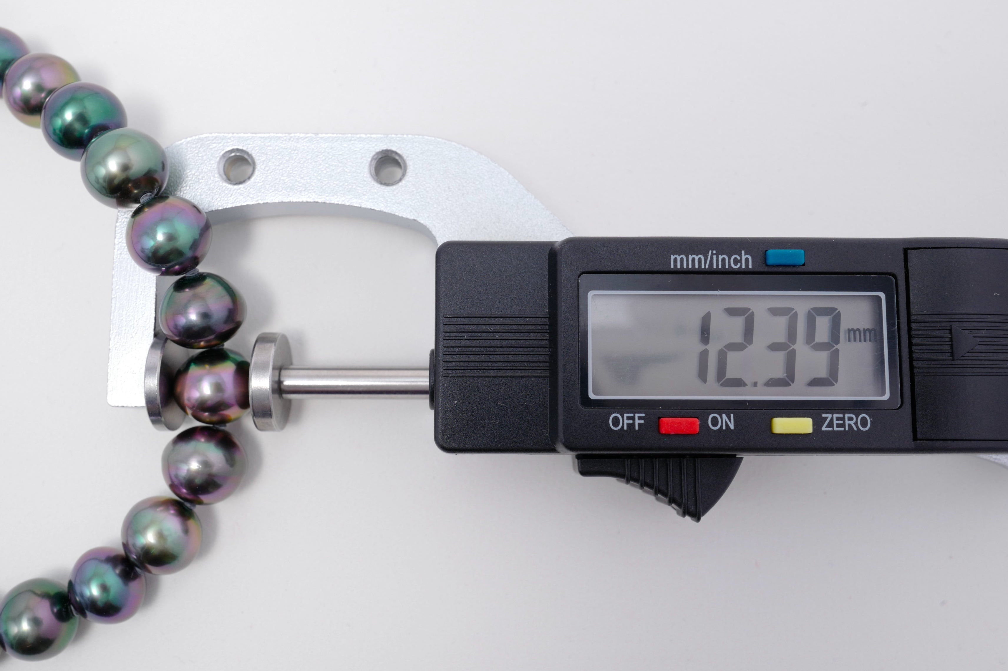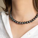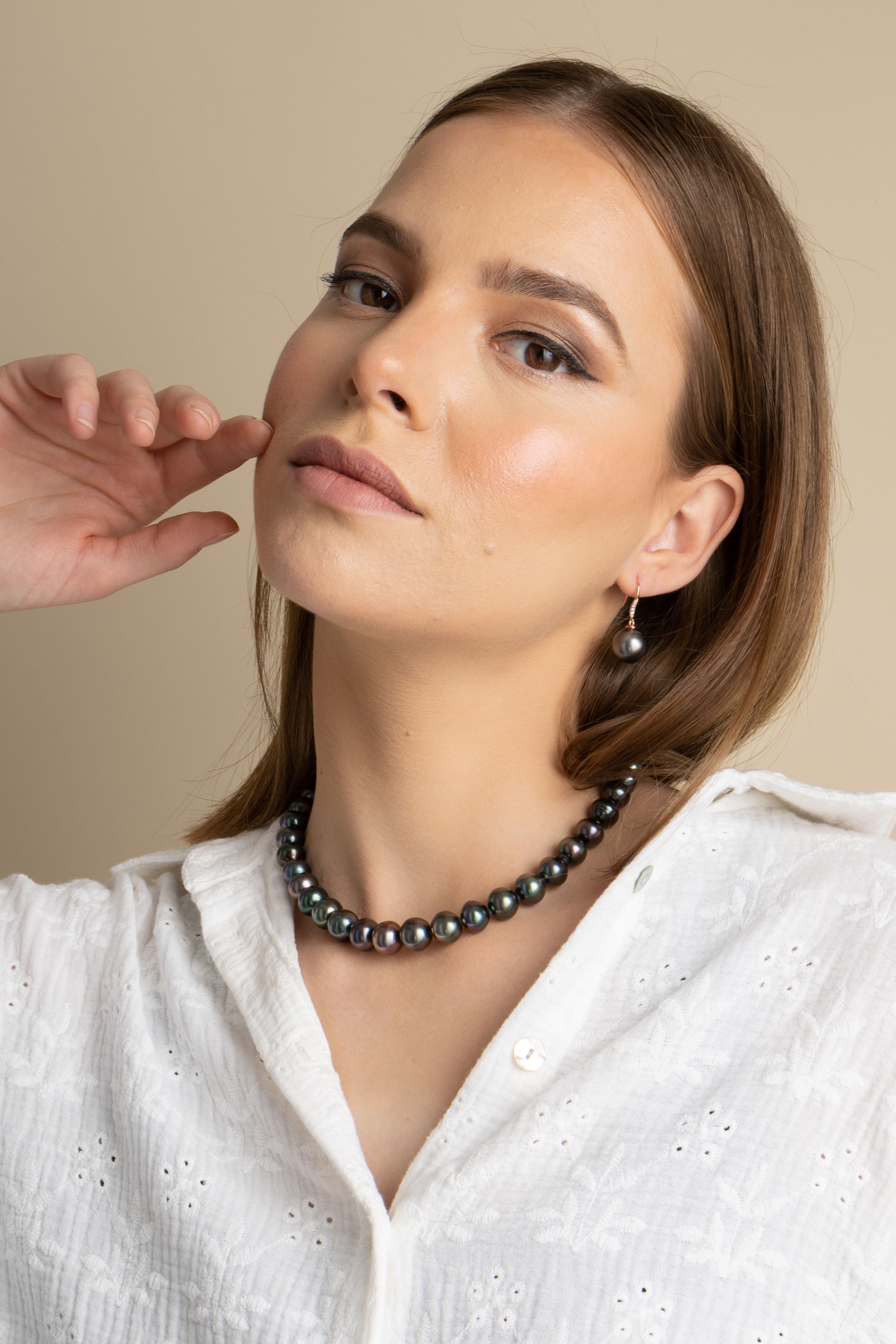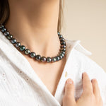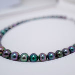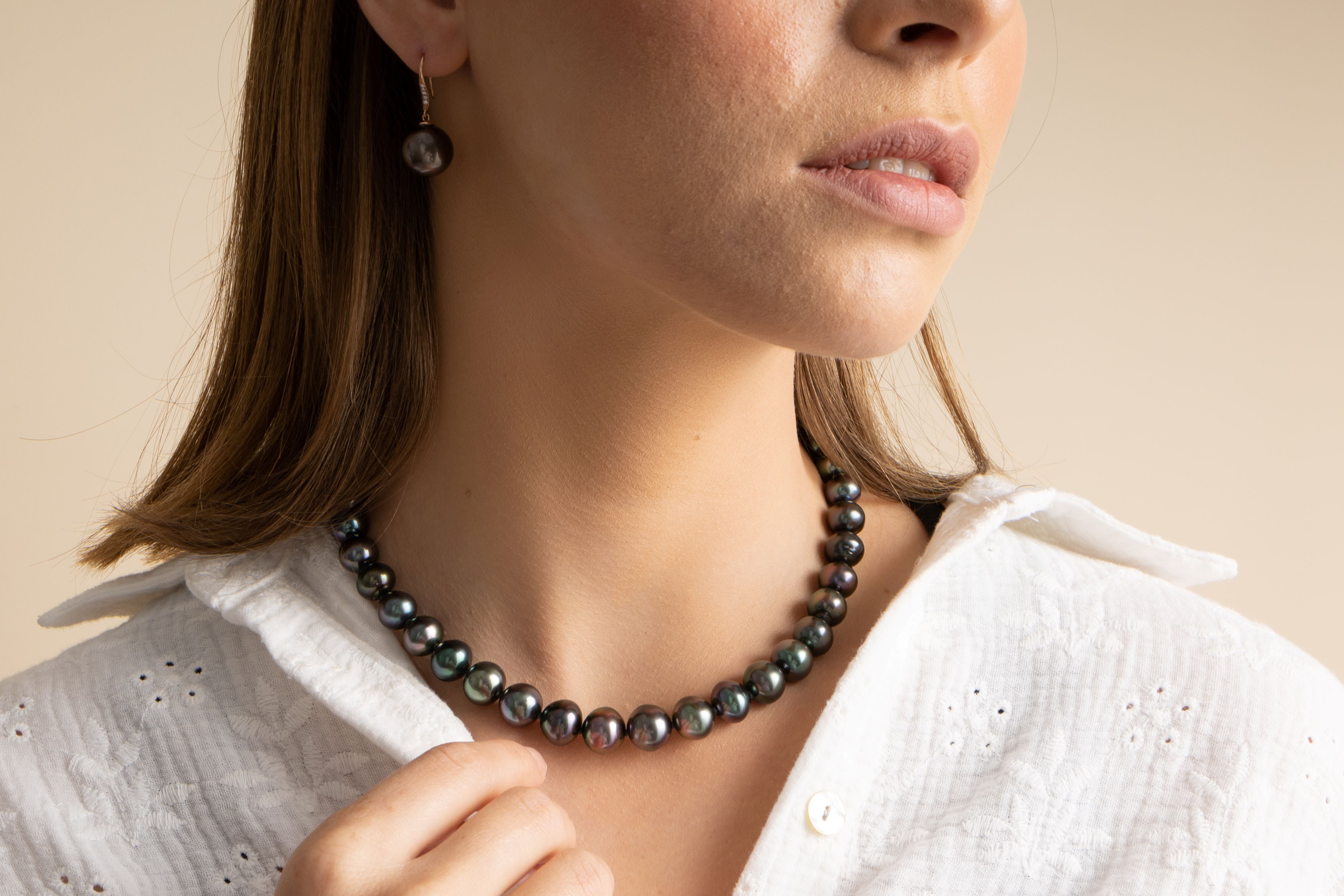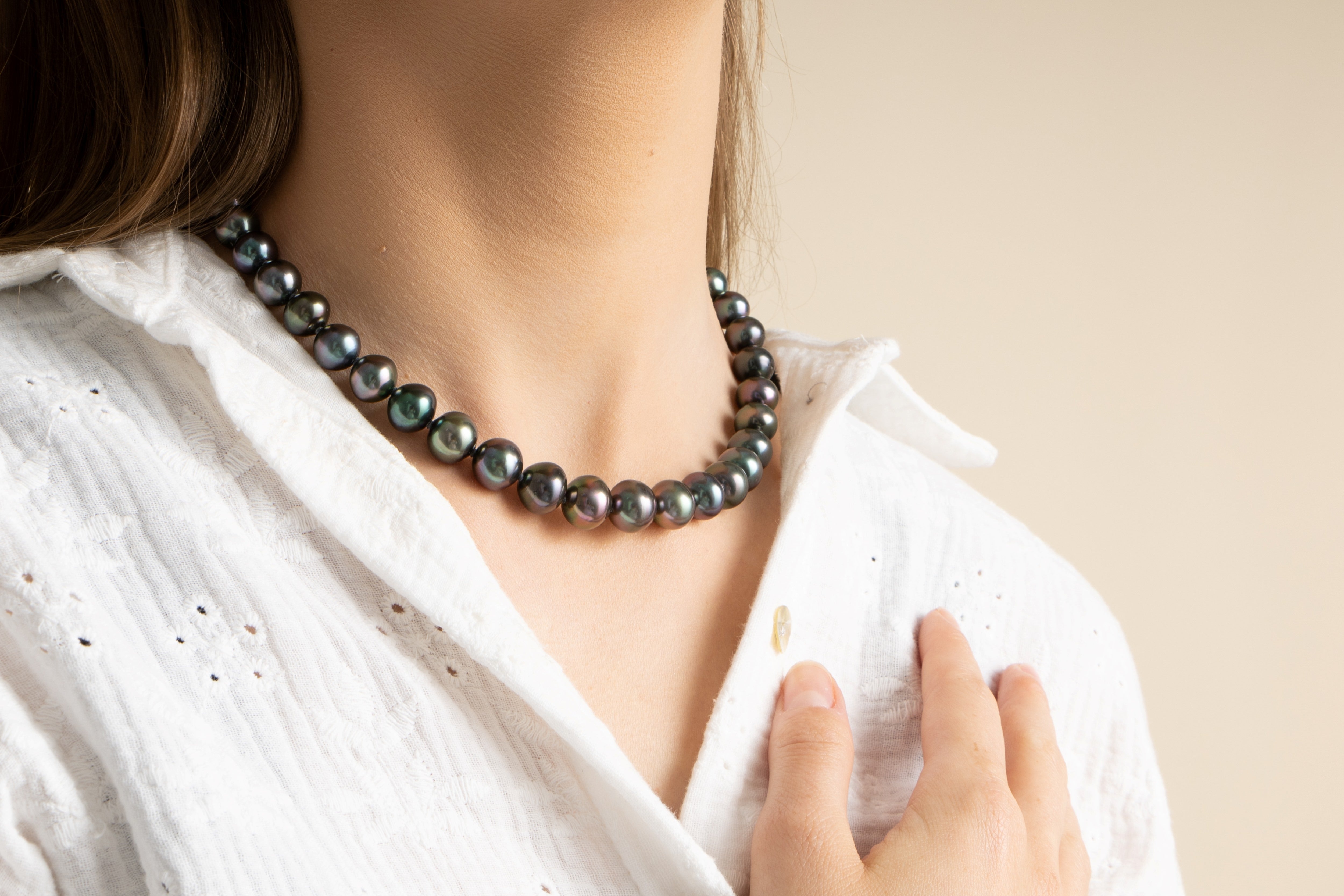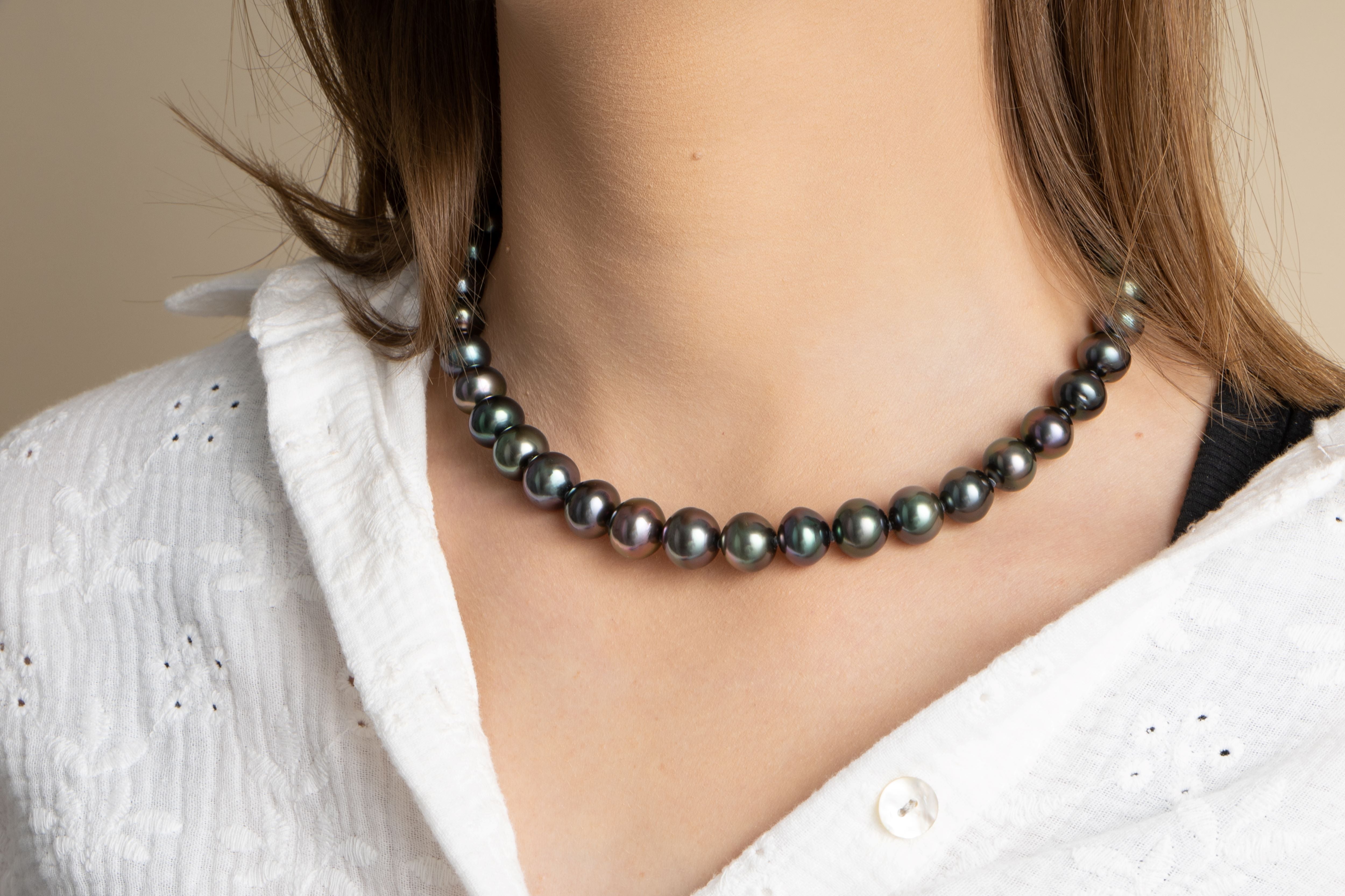 The Tahitian pearls that have been selected for this necklace are approximately 9.3-12.4mm in diameter.