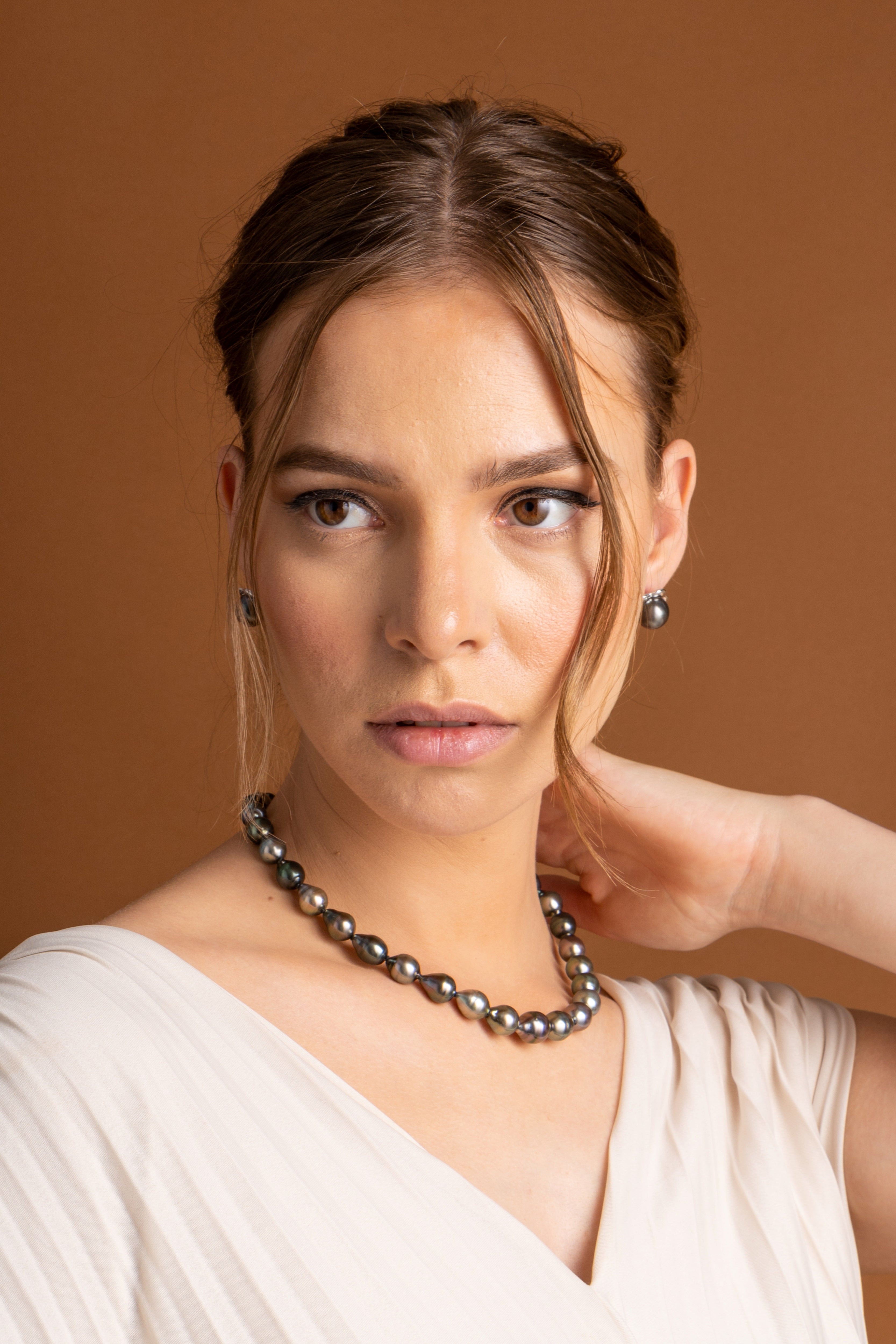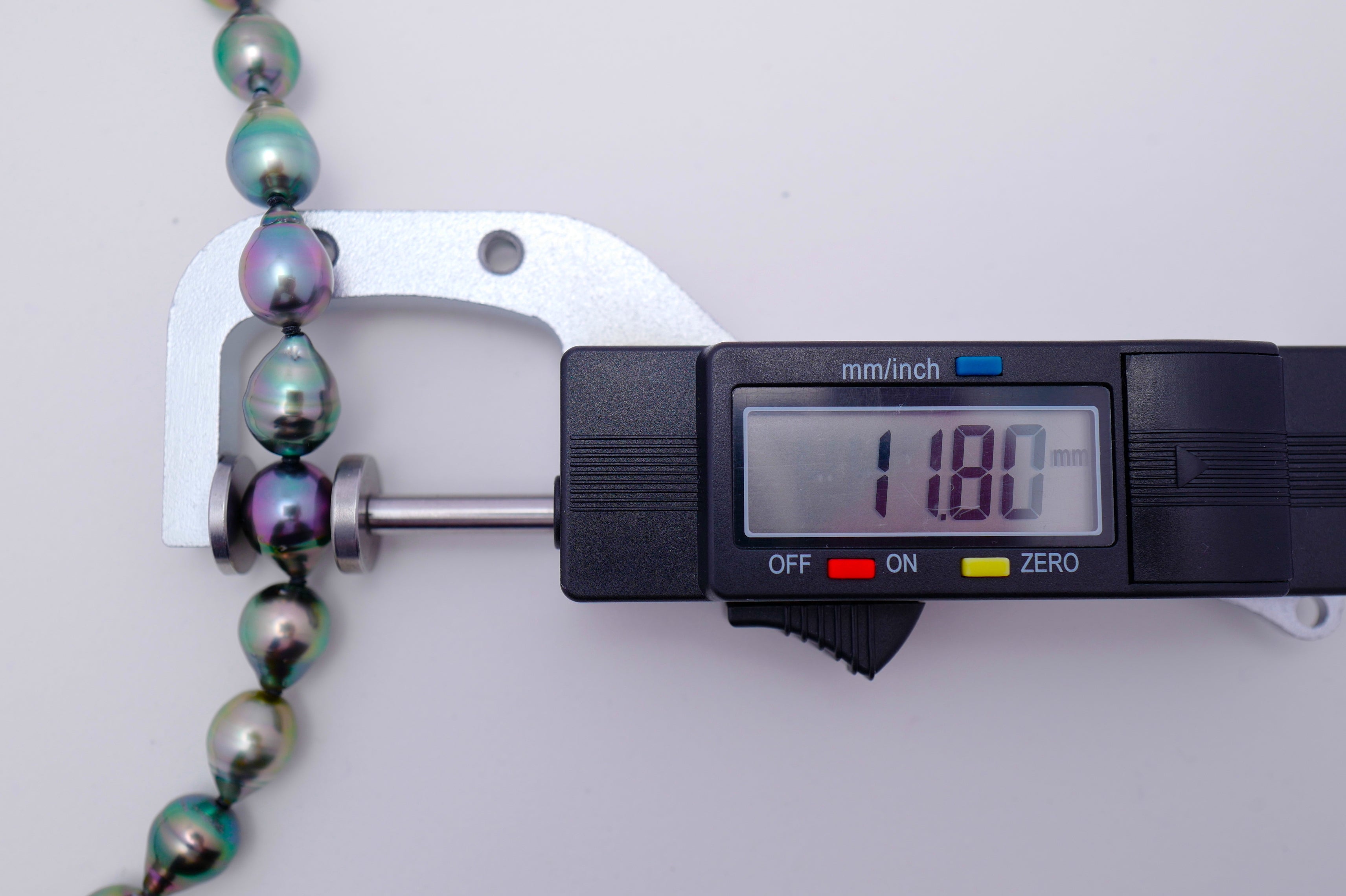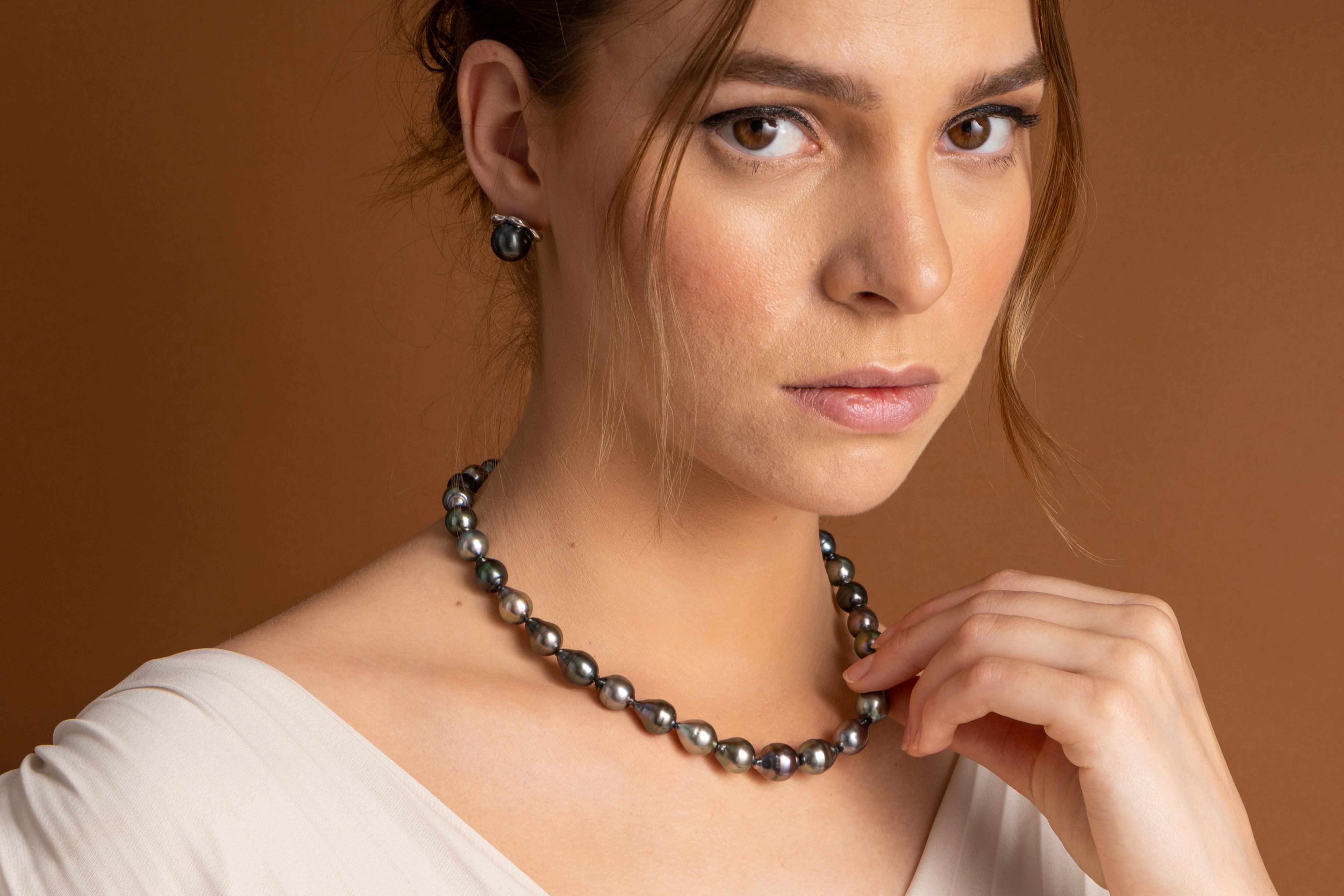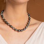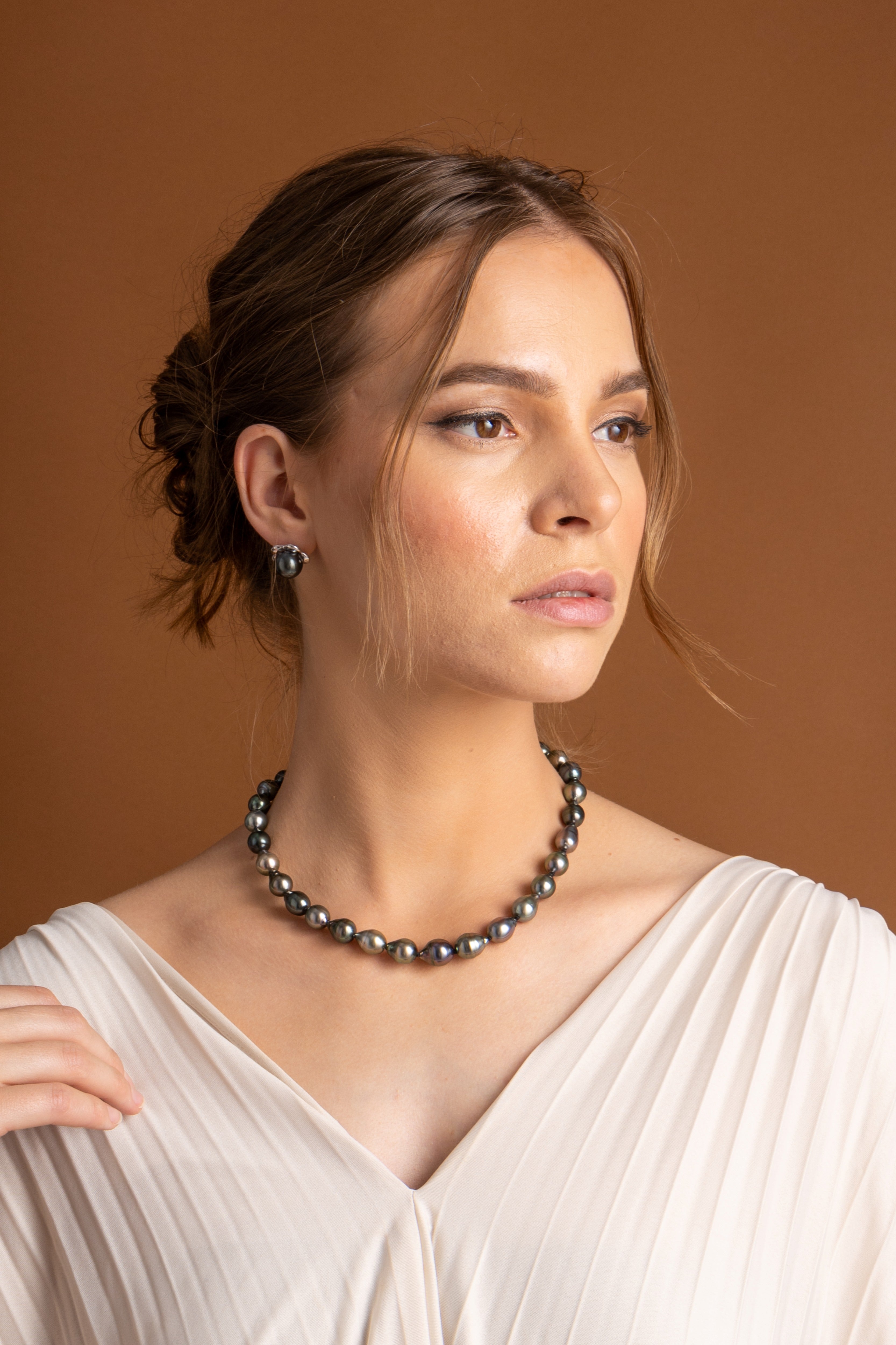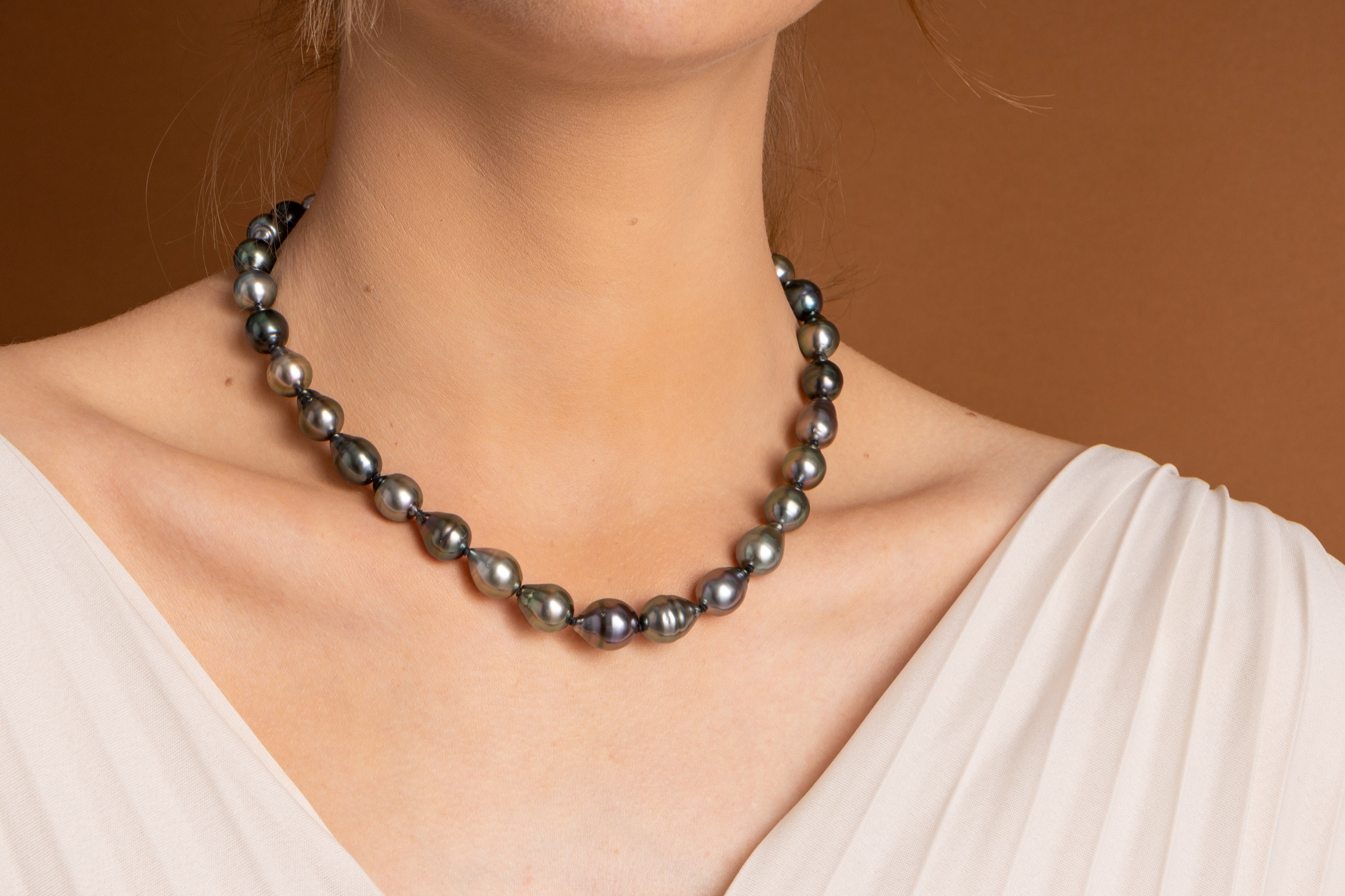 The Tahitian pearls that have been selected for this necklace are approximately 8.9-11.7mm in diameter.