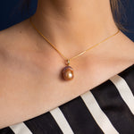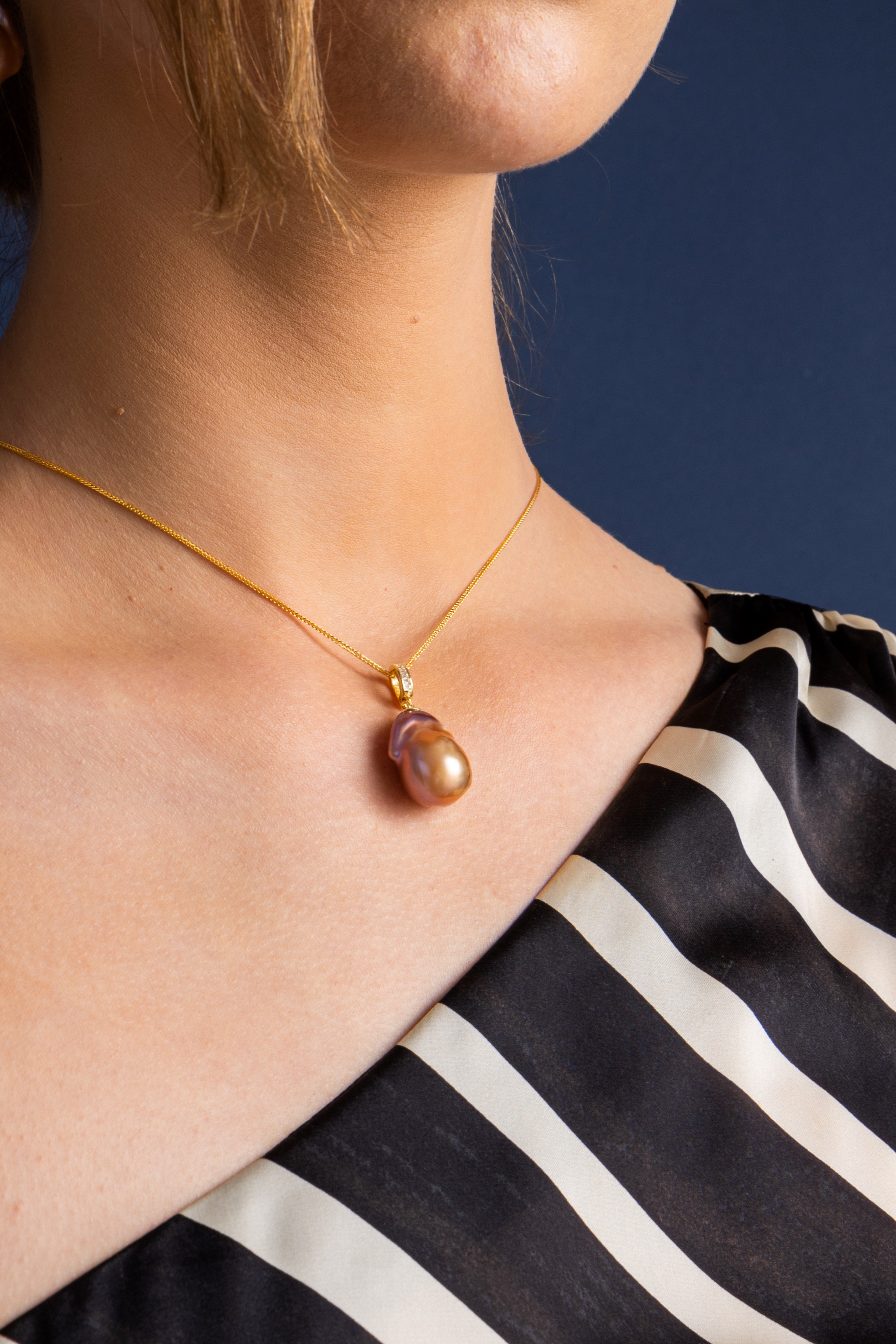 The pink Freshwater cultured pearl for this pendant has been carefully selected for its quality and has an excellent lustre and smooth surface. The size of the pearl is approximately 12.5-15.5mm in diameter and has a drop length of 20-24mm.